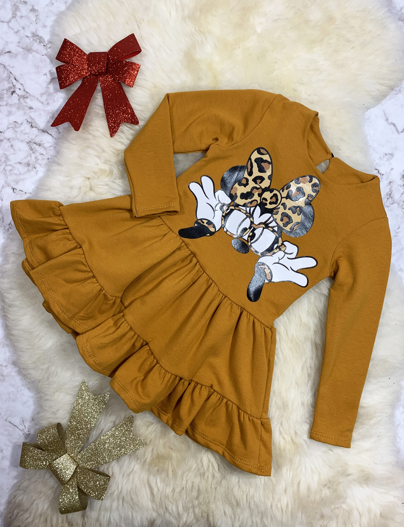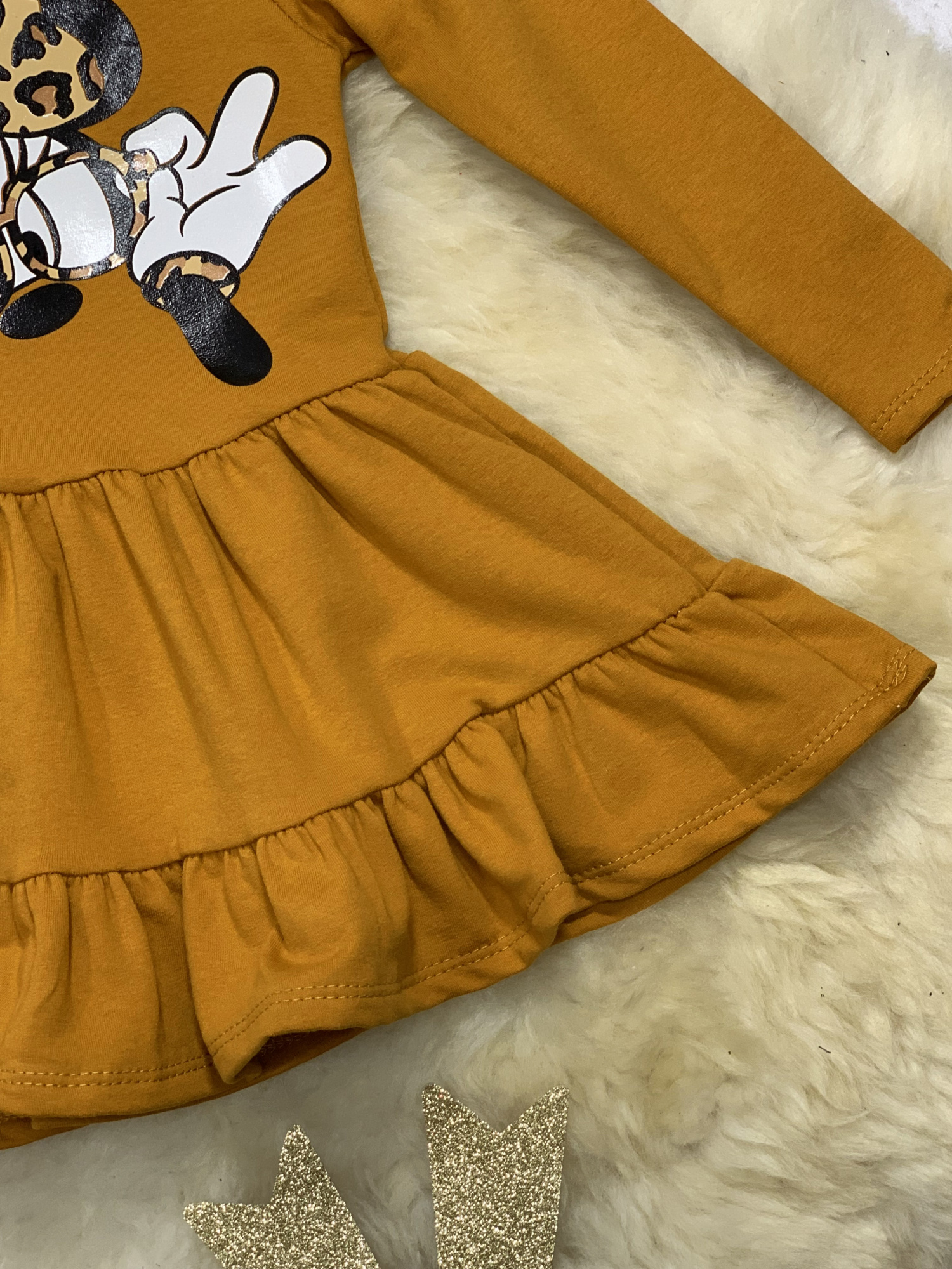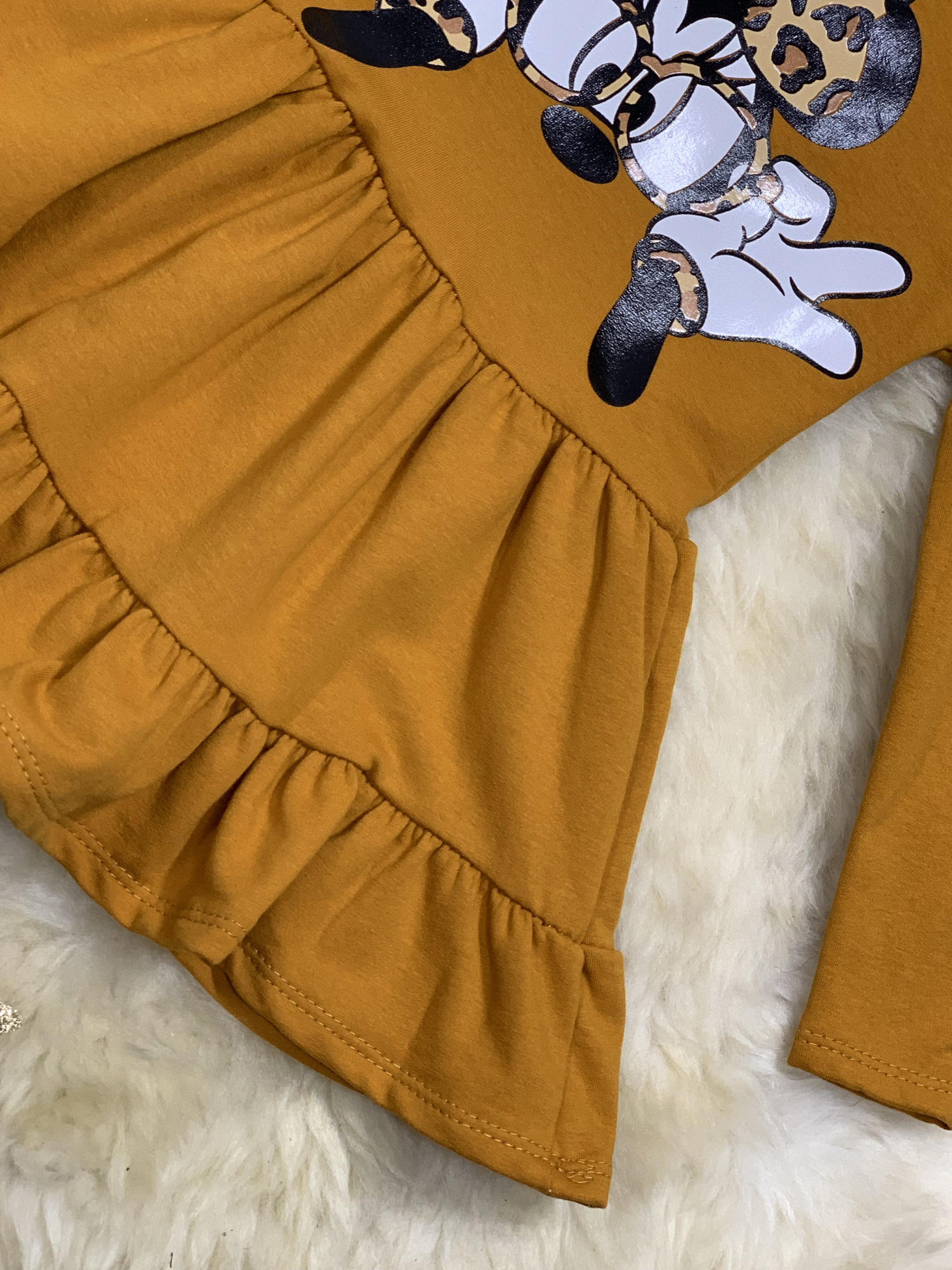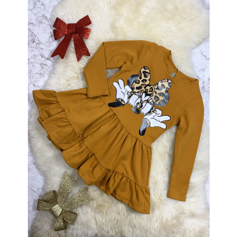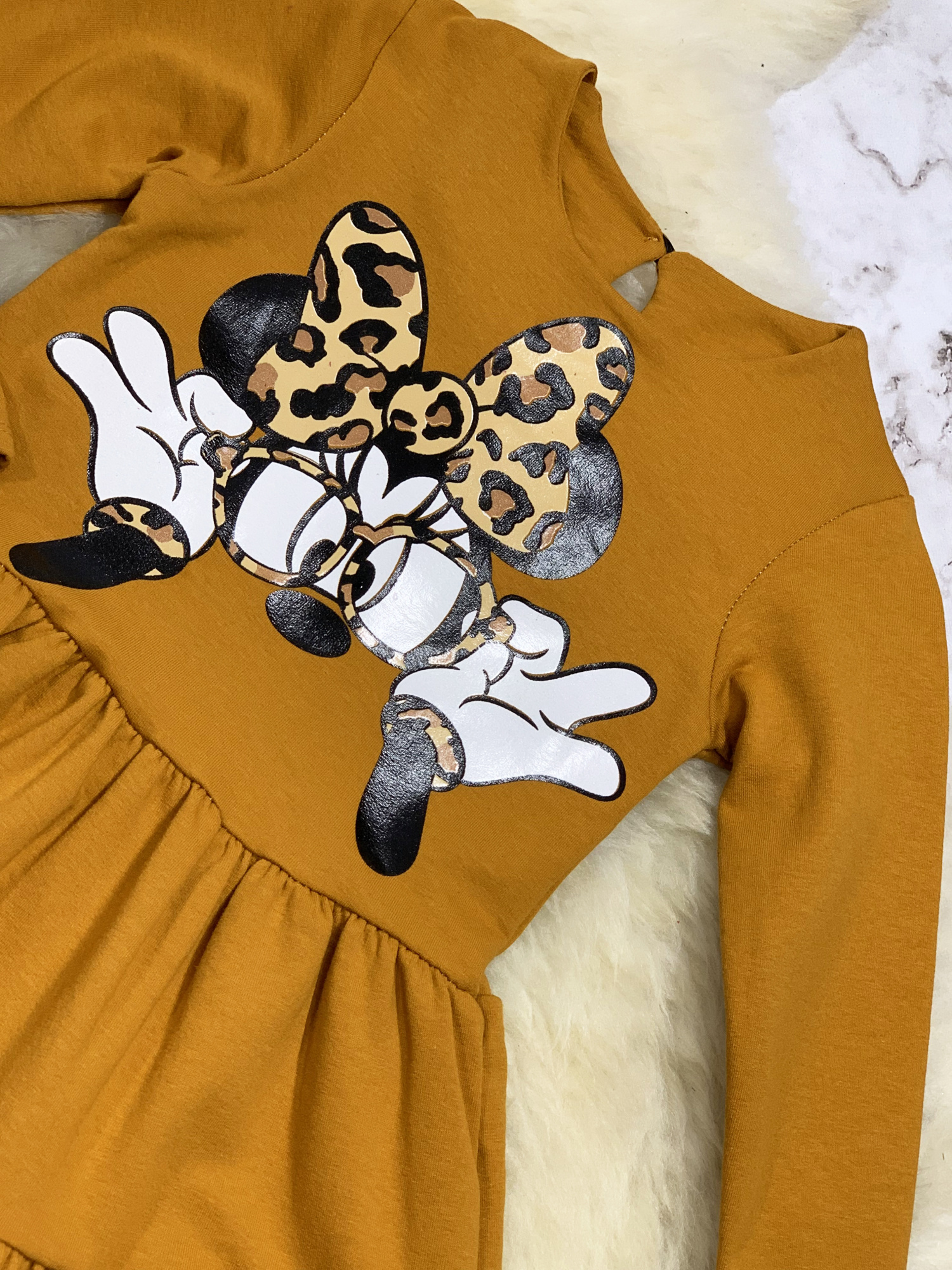 Bawełniana Sukienka z Myszką Minnie - musztardowy