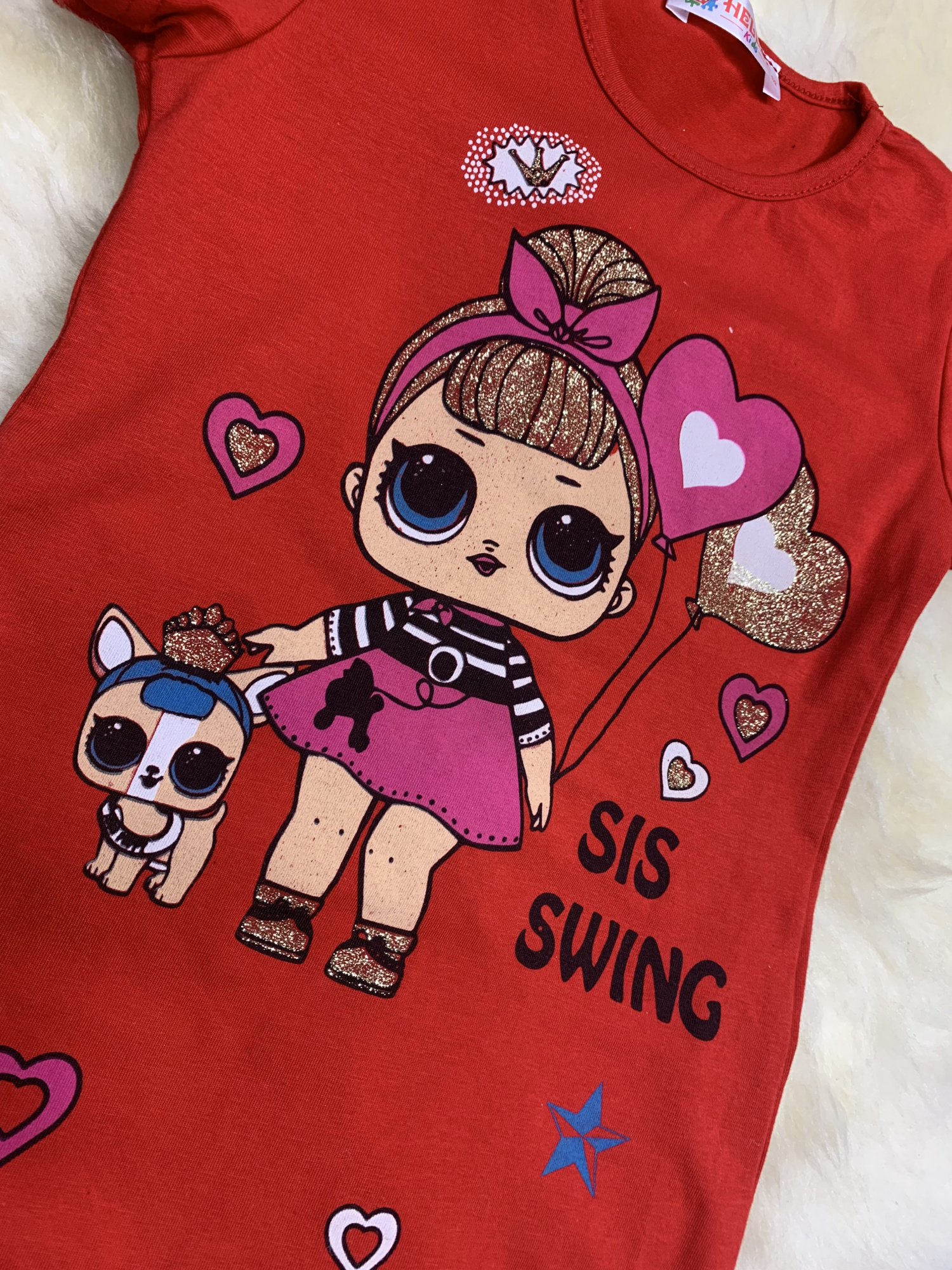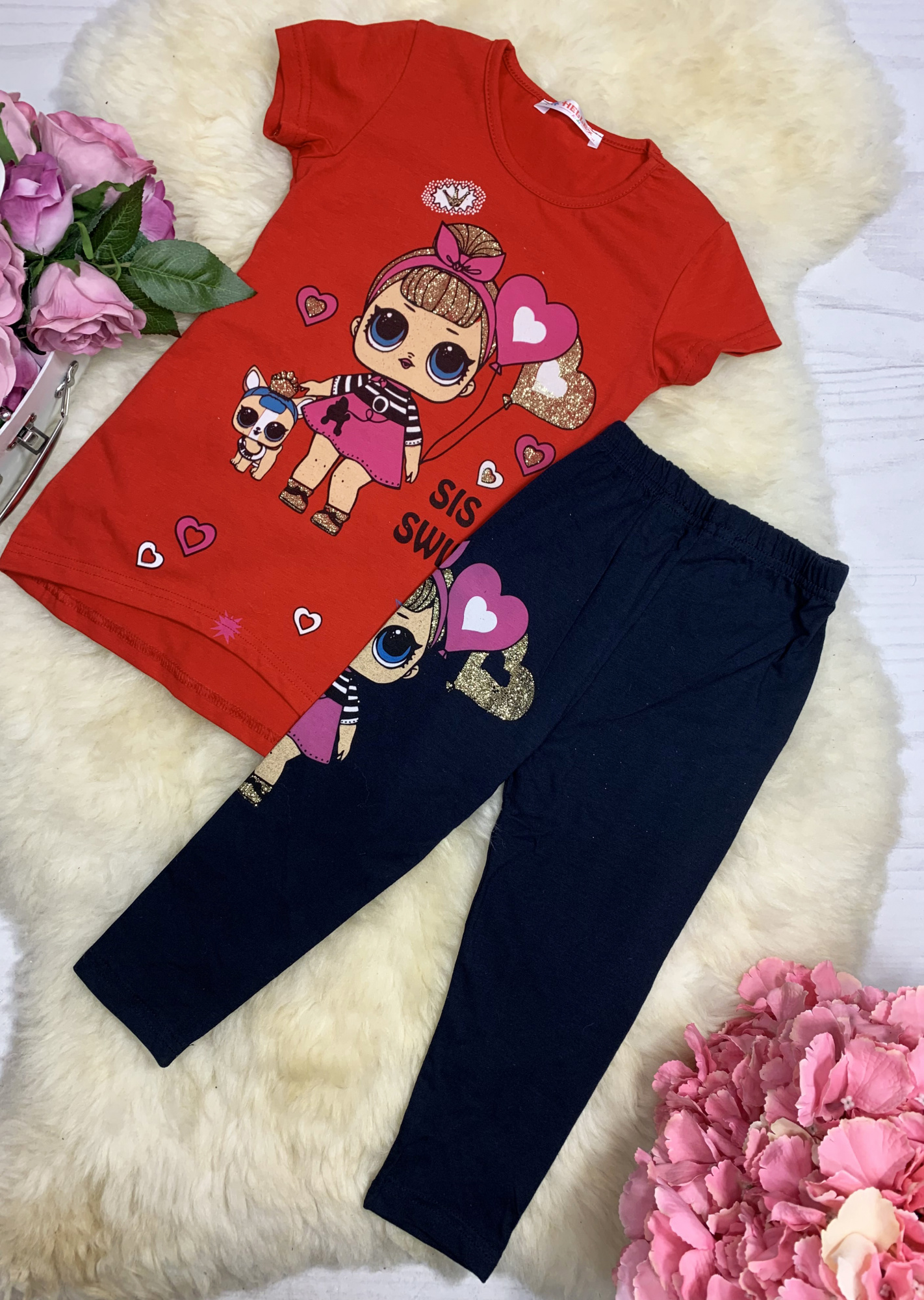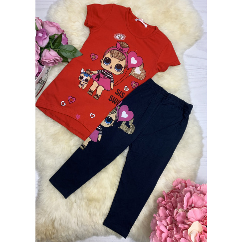 Bawełniany Komplet Bluzka+ Getry 3/4 LOL - Czerwony