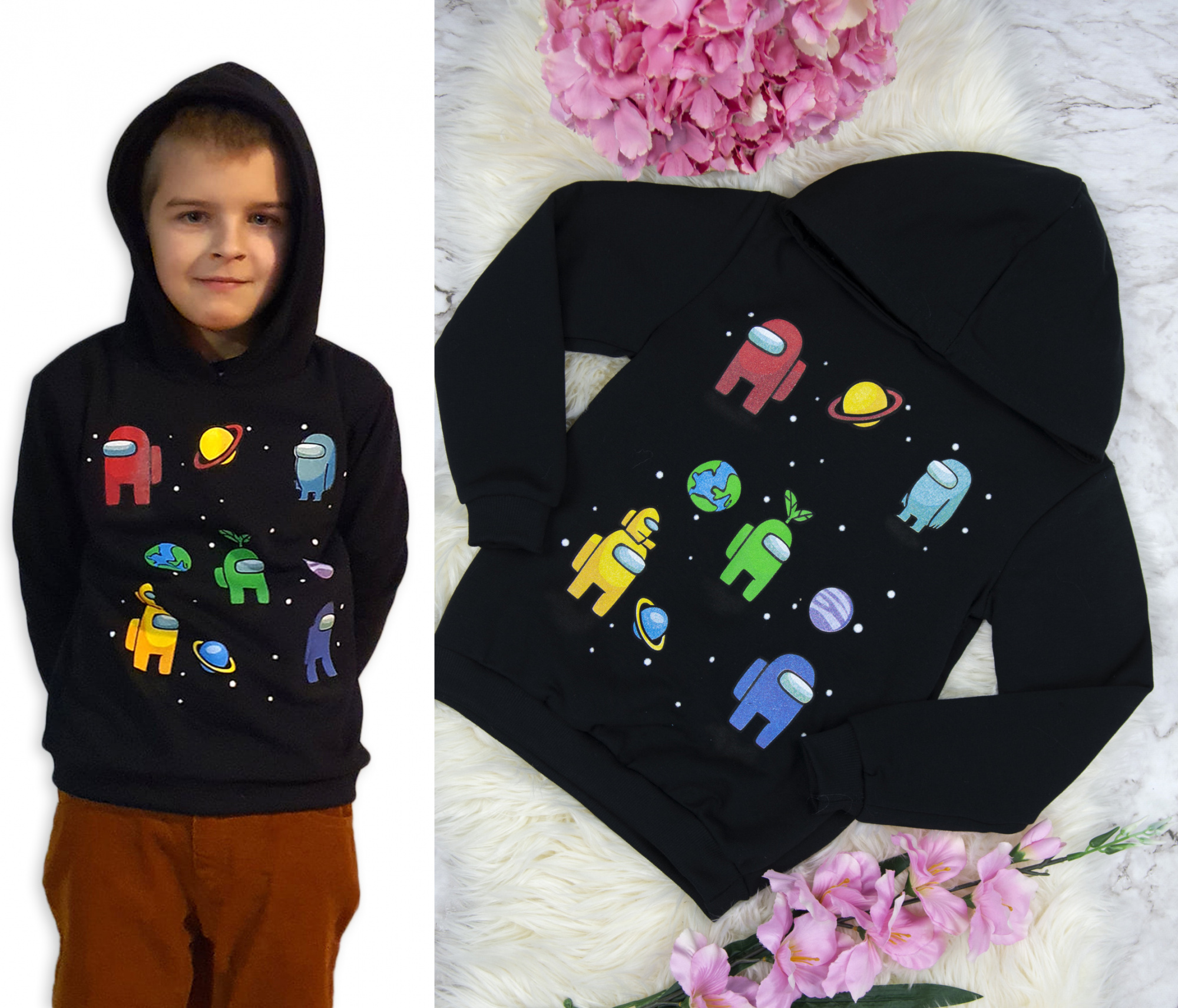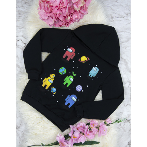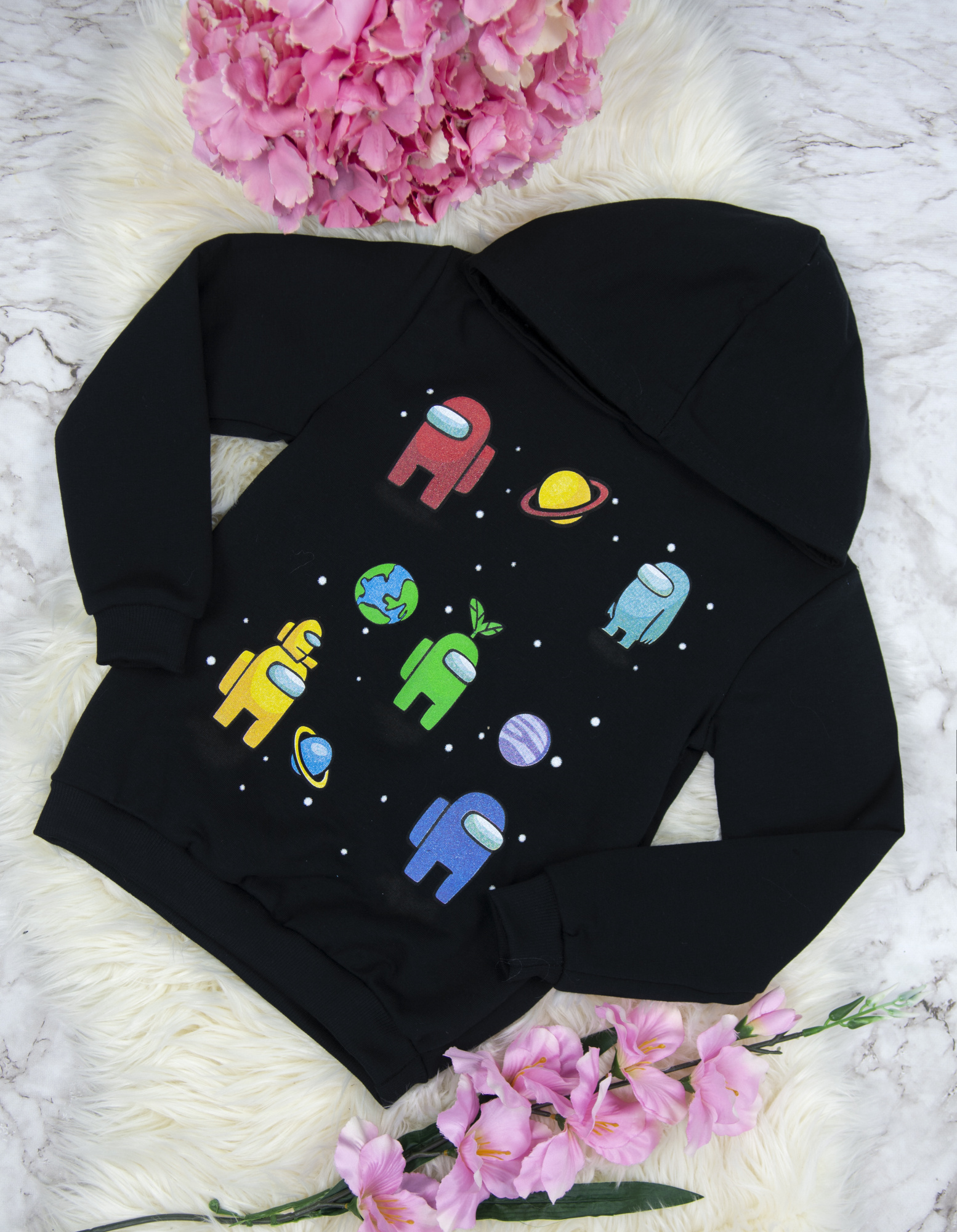 • z przodu bluza zdobiona kolorowymi nadrukami z gry Among Us
