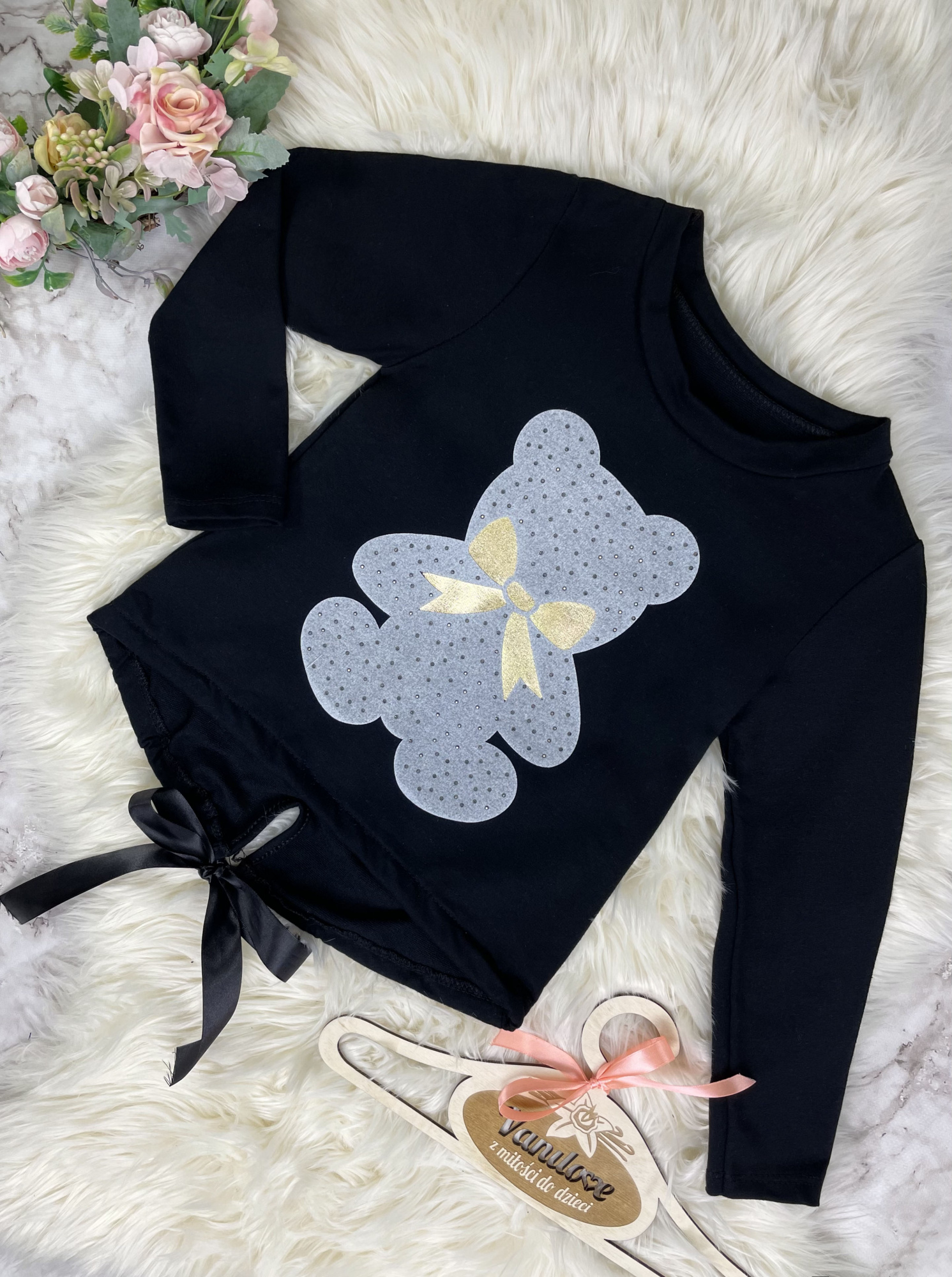 Bluza dla Dziewczynki Bear z Wiązaniem - Black