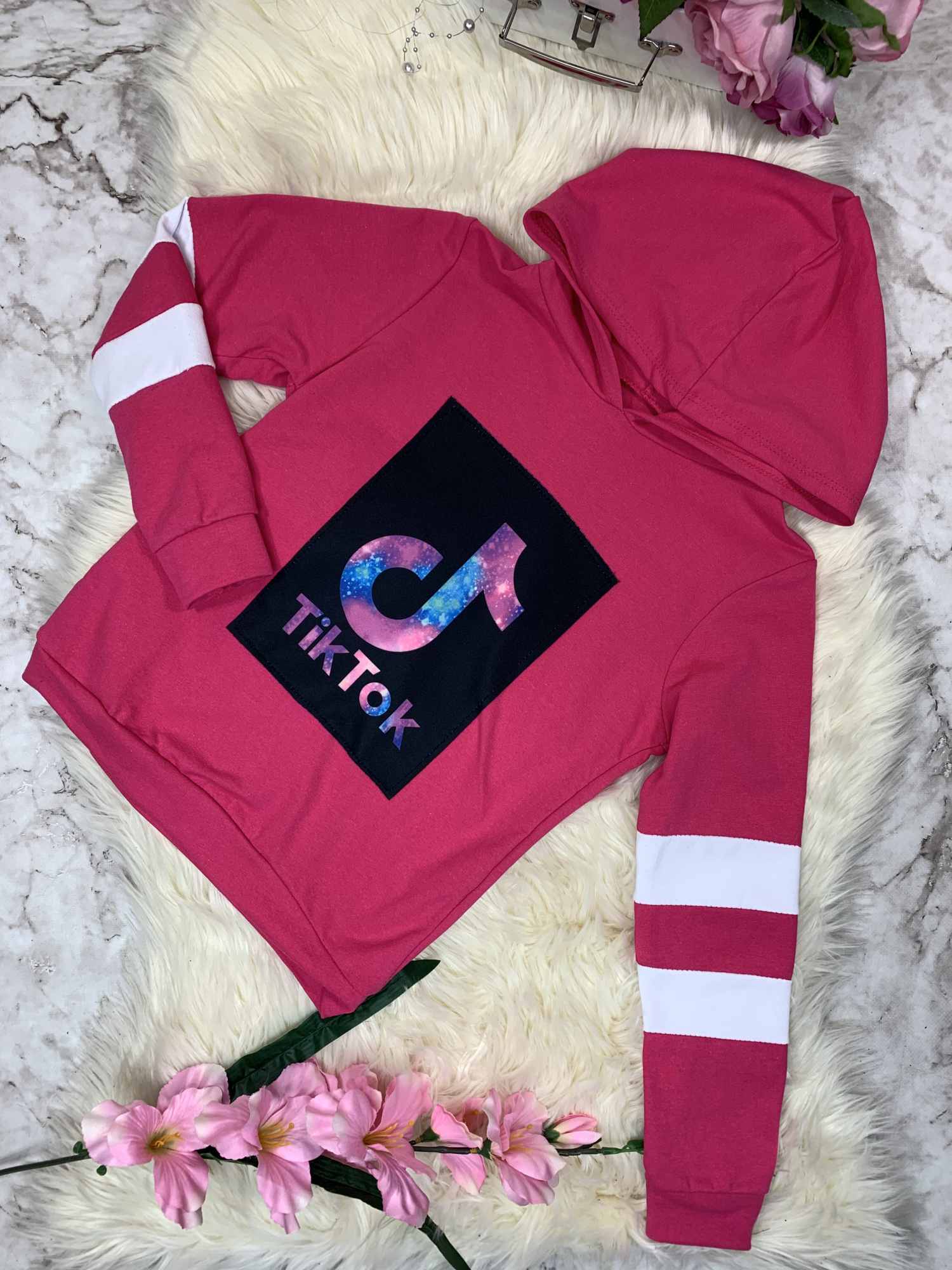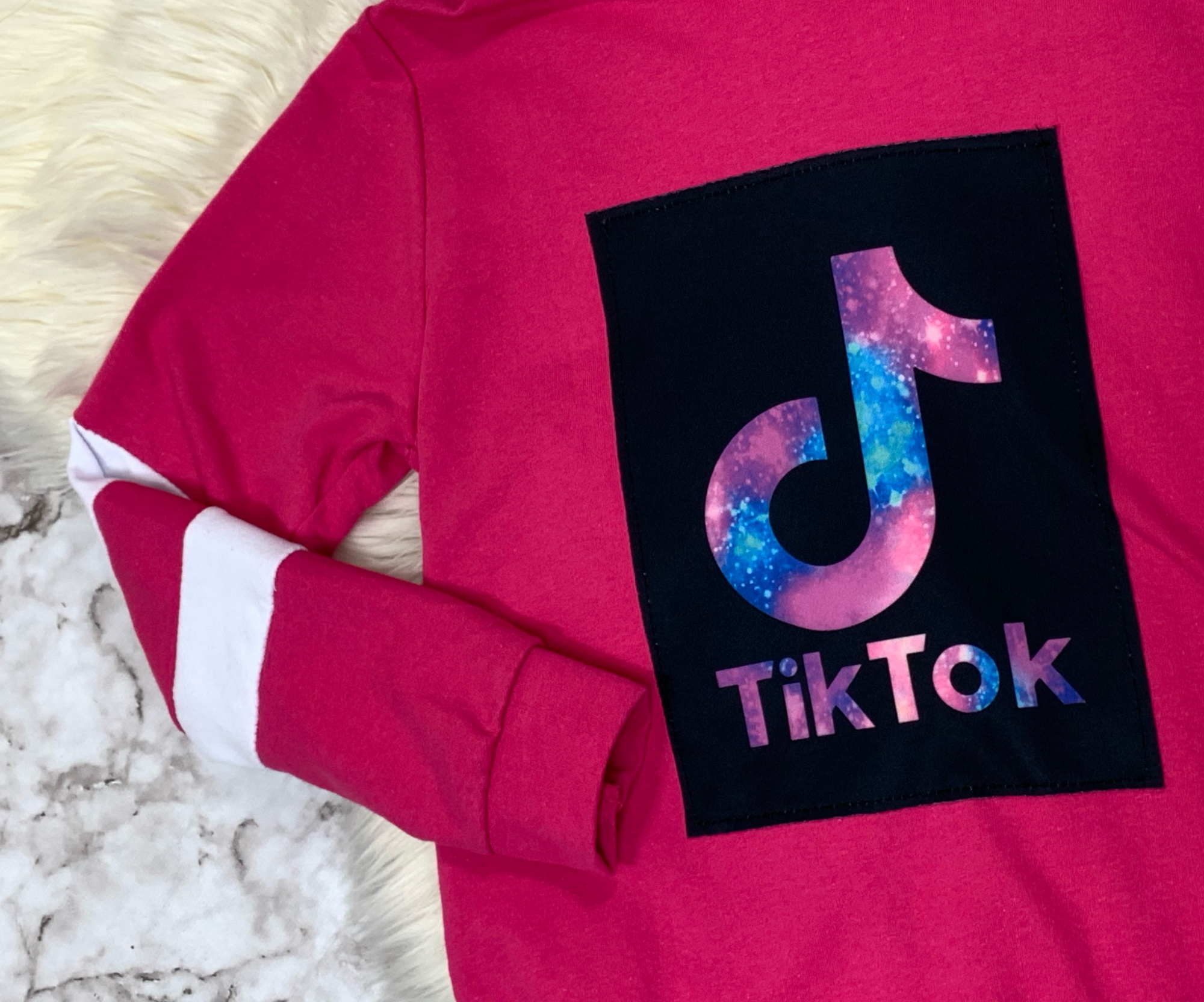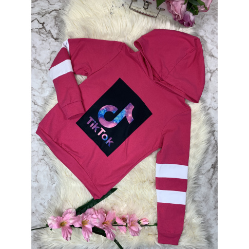 • klasyczny model bluzy z kapturem i modnym wyszytym nadrukiem Tik Tok