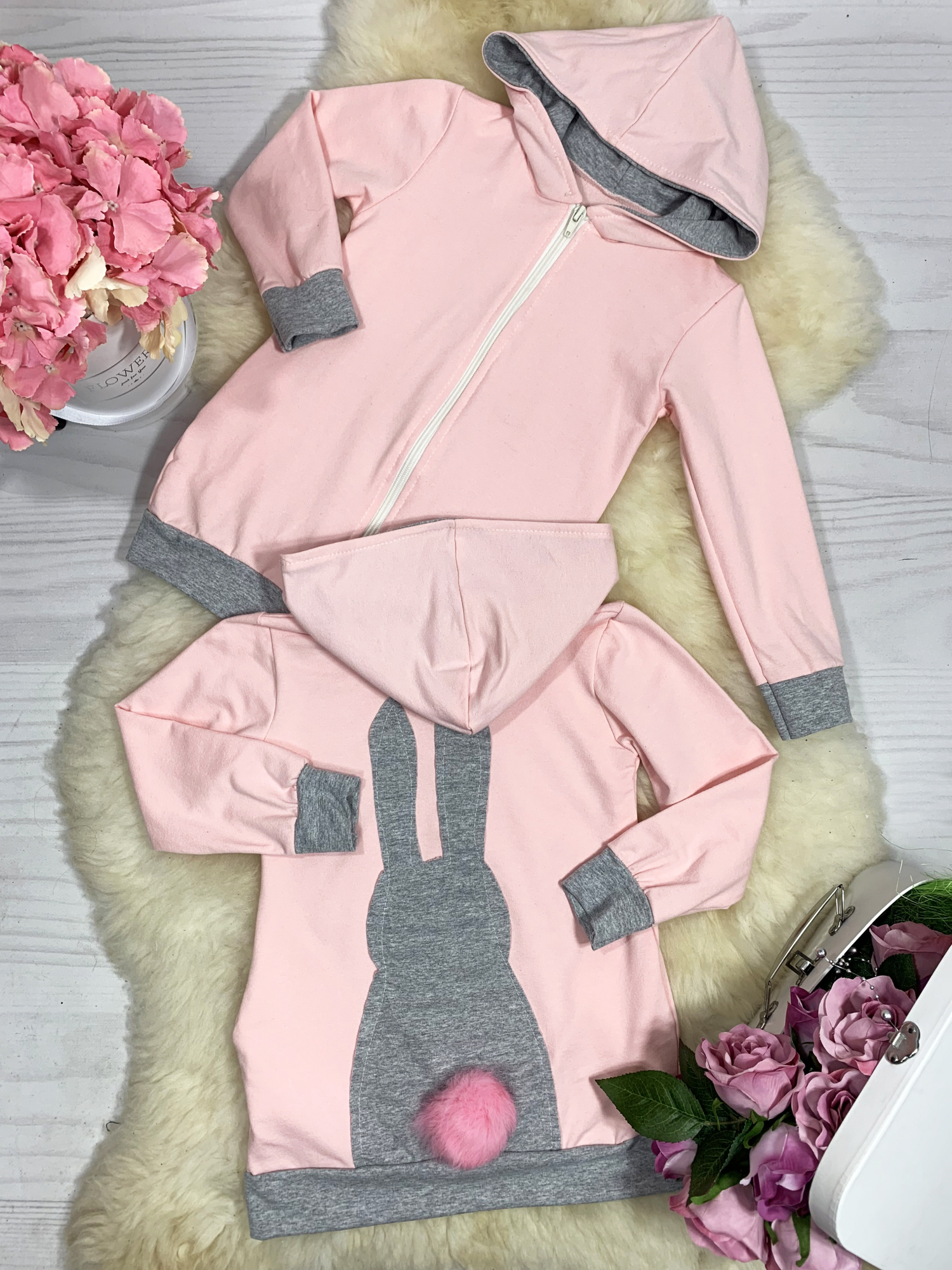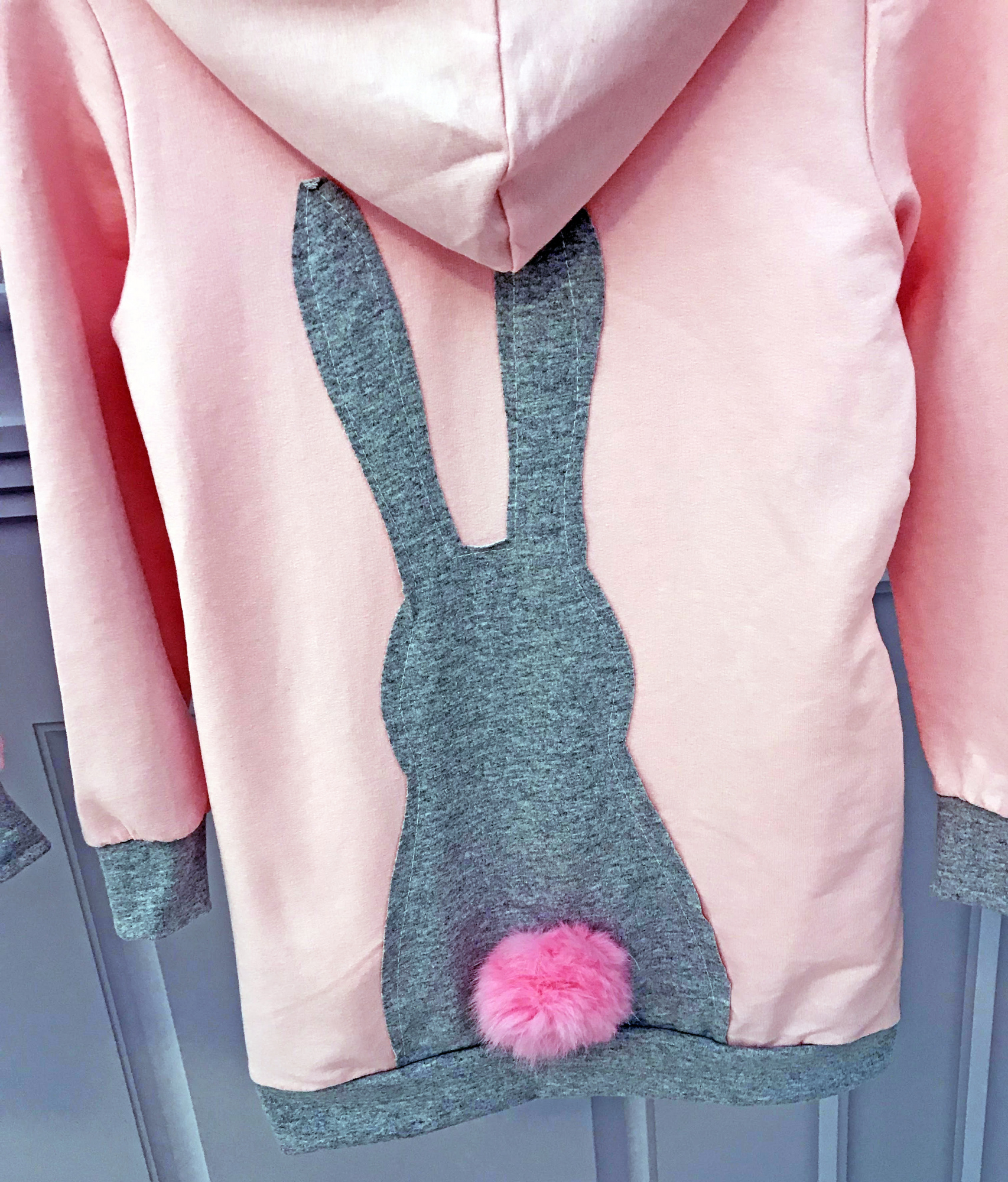 • z tyłu bluzy modna aplikacja króliczka z ogonkiem