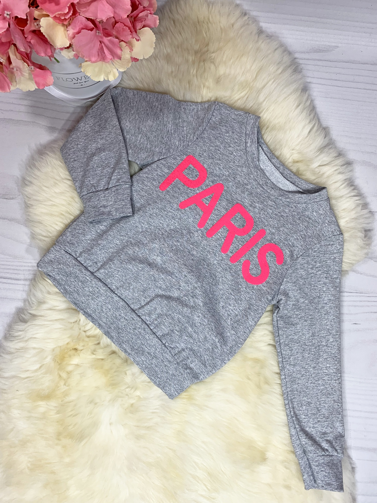 • bluza z nadrukiem ,,Paris", wykończona ściągaczem na dole i przy rękawach