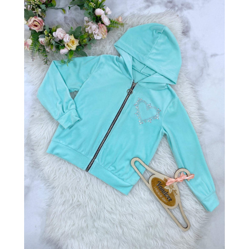 • bluza zapinana na zamek z kapturem, zdobiona naszywką serduszkiem z cyrkonii