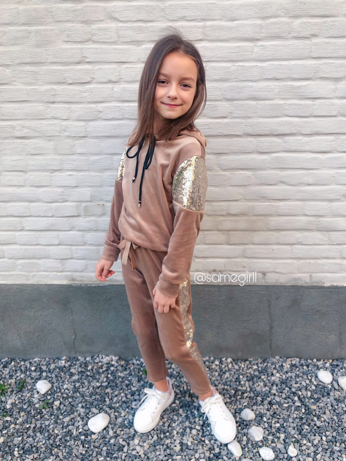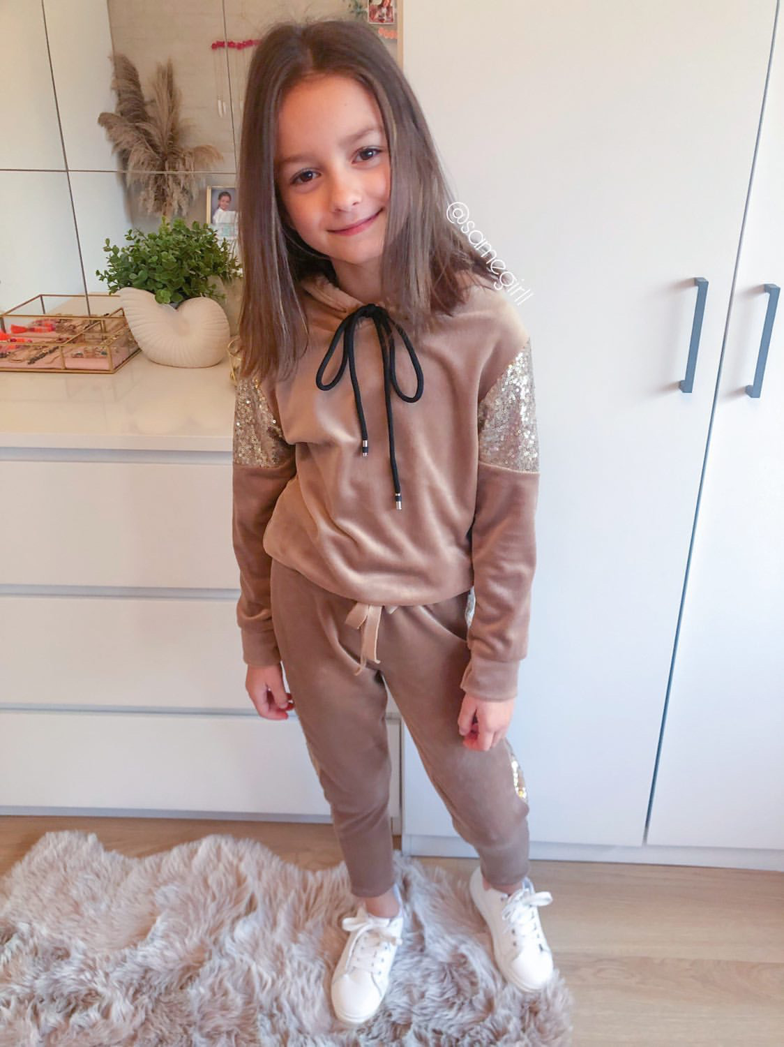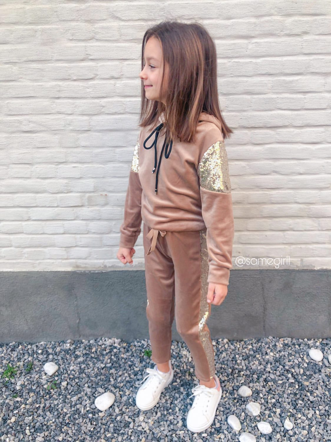 Bluza welurowa dla dziewczynki Sequins Beige