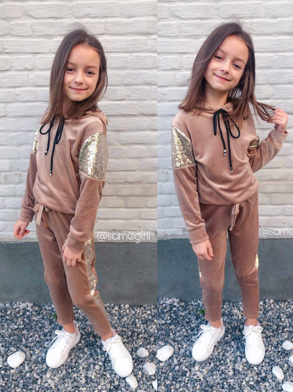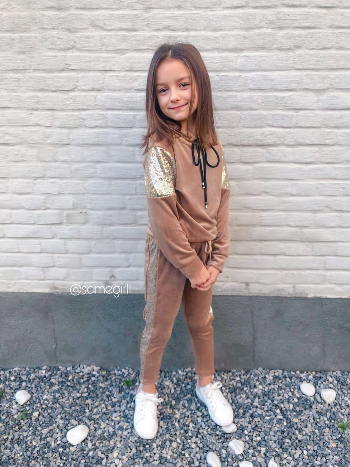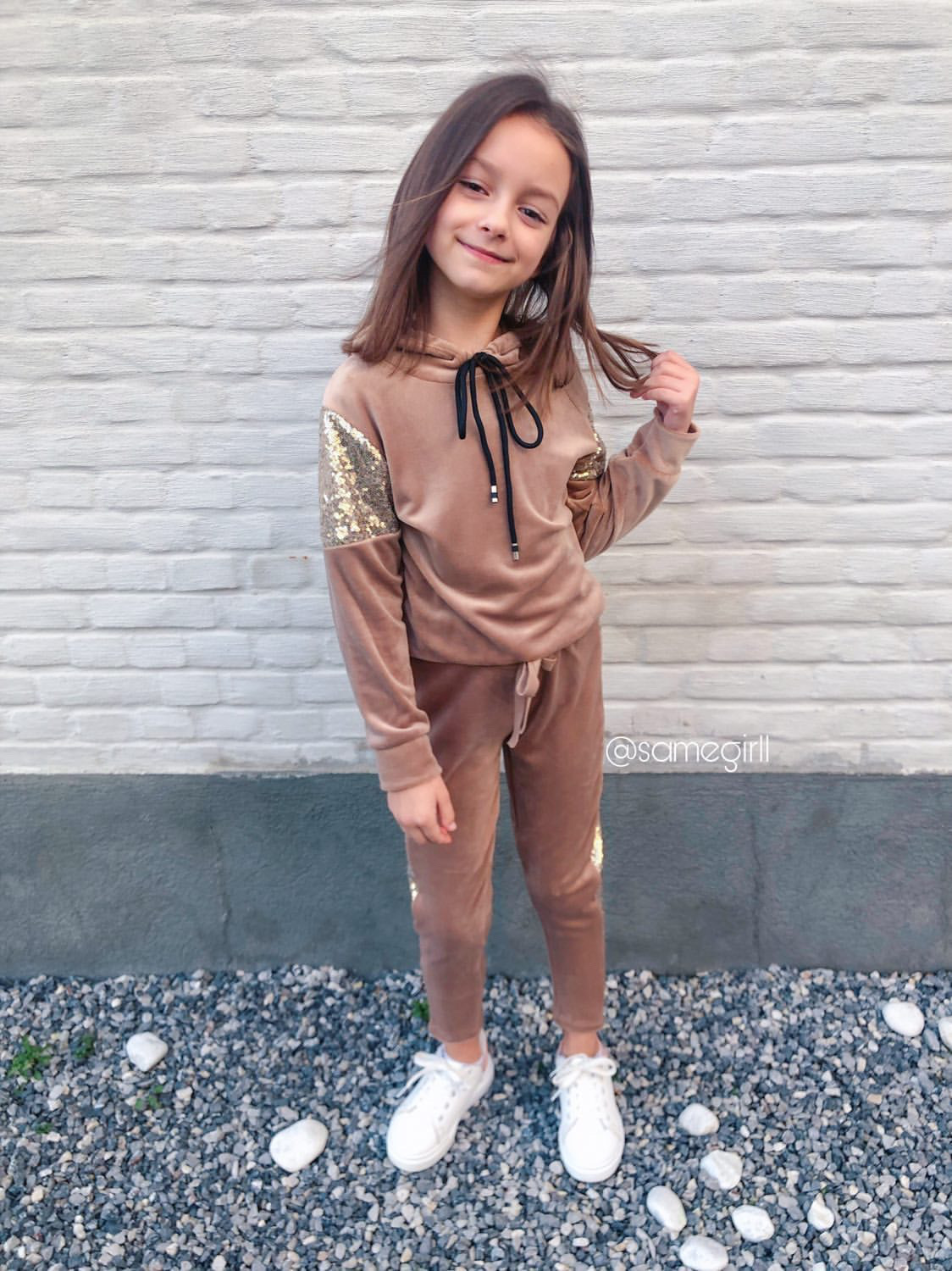Bluza welurowa dla dziewczynki Sequins Beige