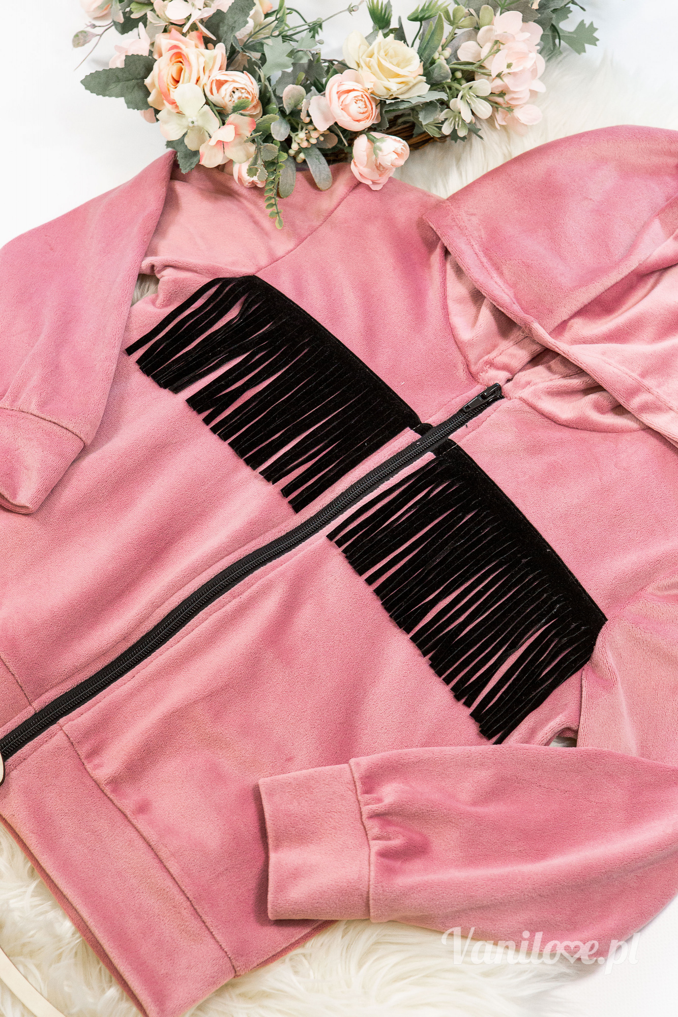 • bluza na zamek ozdobiona frędzelkami