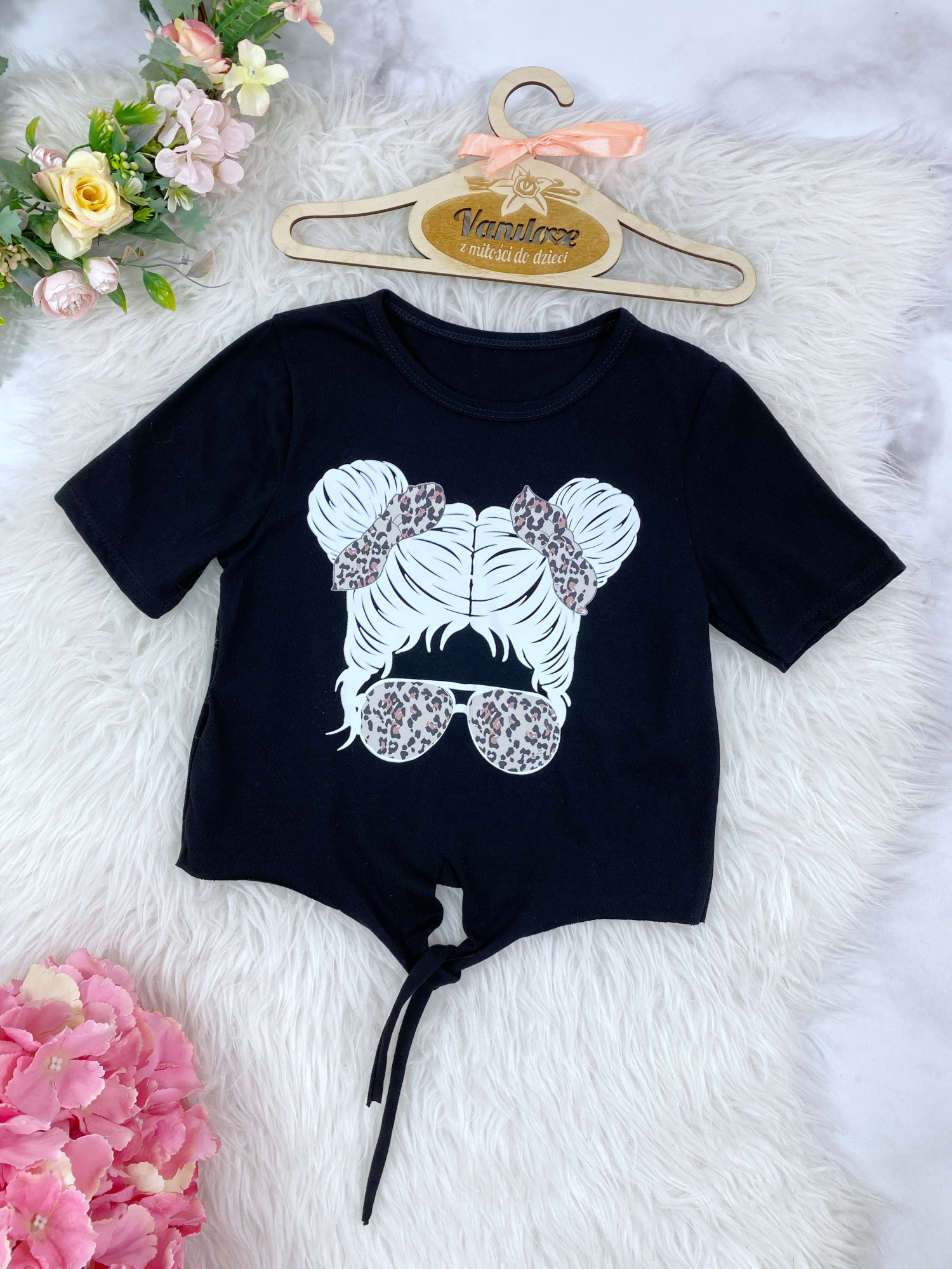 • bluzka z uroczym wiązaniem i nadrukiem dziewczynki