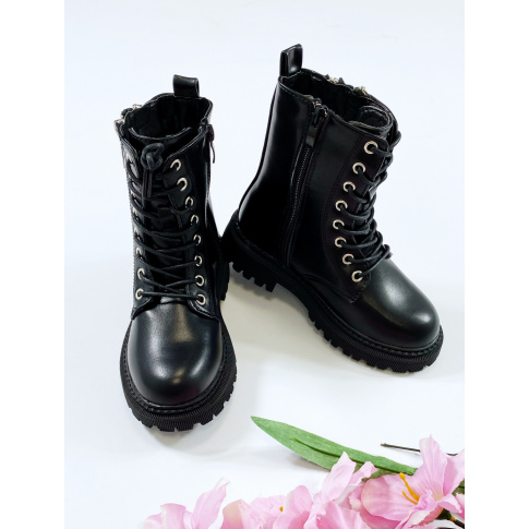 Botki Traperki Ocieplane dla Dziewczynki Vintage - kolor czarny