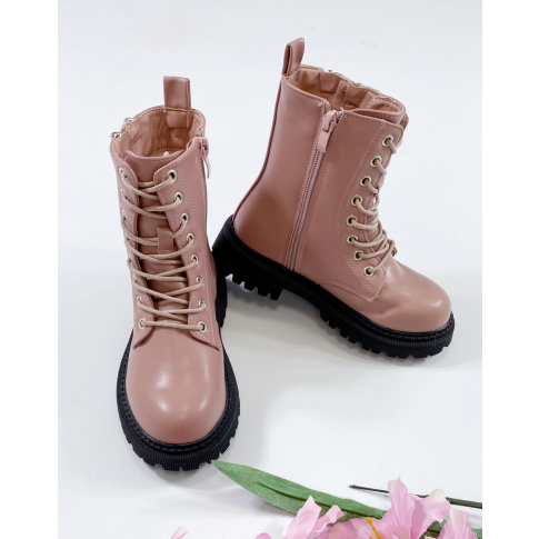 Botki Traperki Ocieplane Vintage - kolor różowy