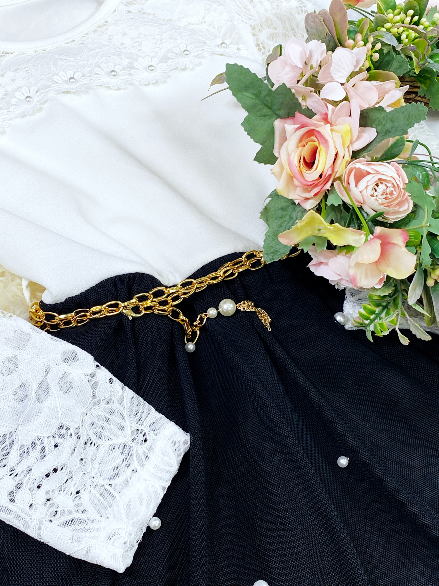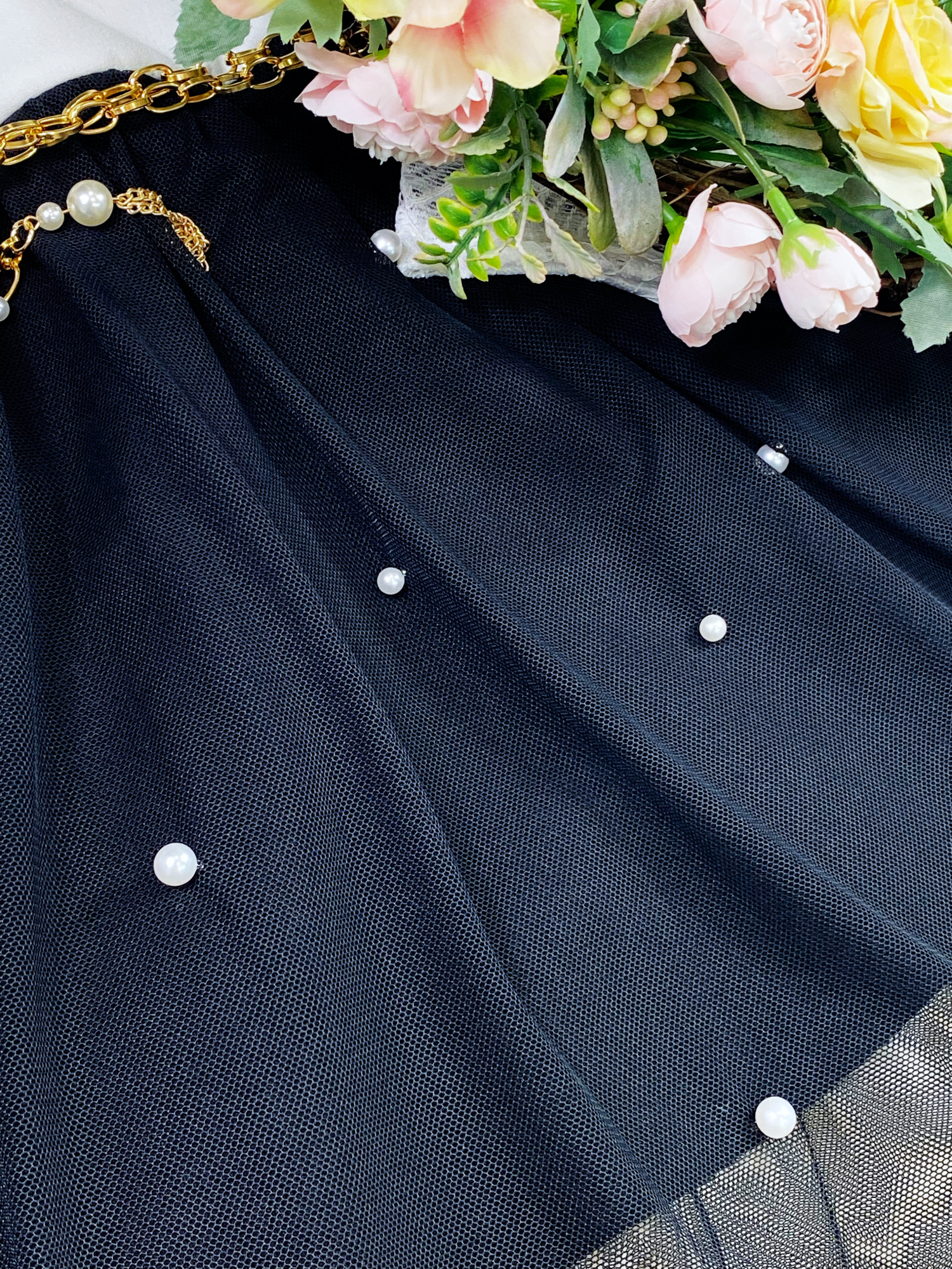 - tul ozdobiony perełkami
