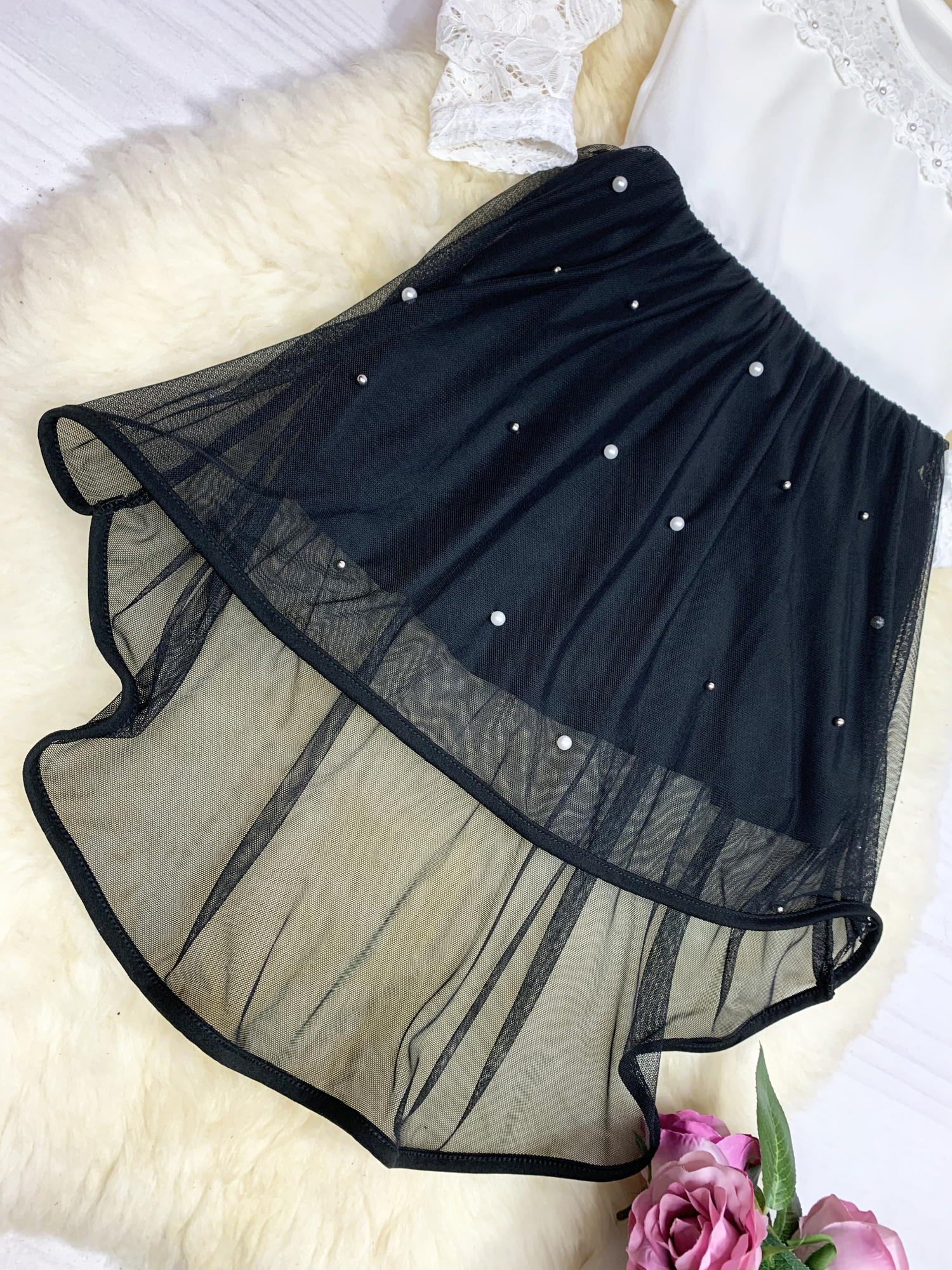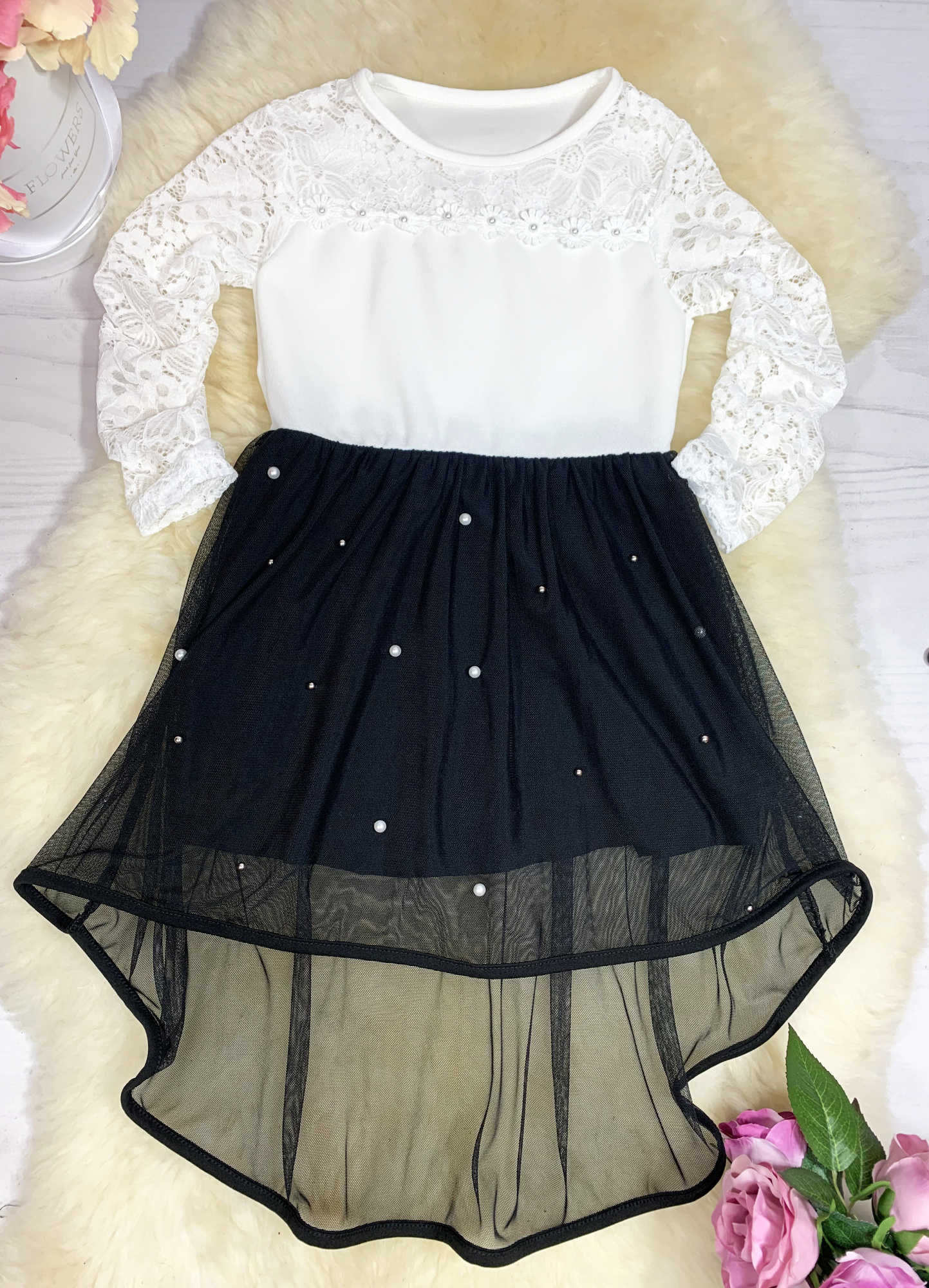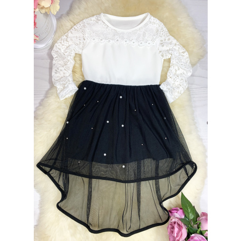 - dół wykonany z tiulowego materiału w asymetrycznym fasonie, na podszewce