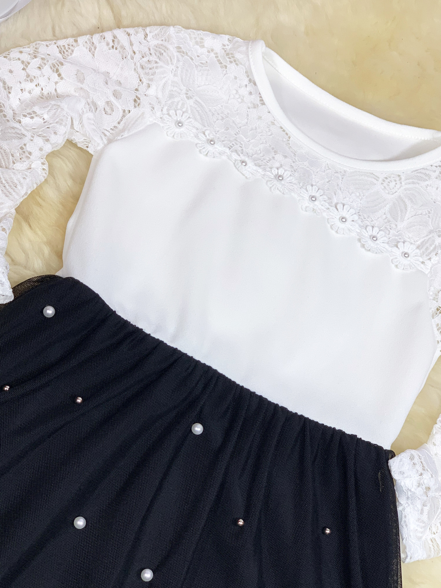 - model u góry zdobiony koronką z perełkami , rękawy również z koronki