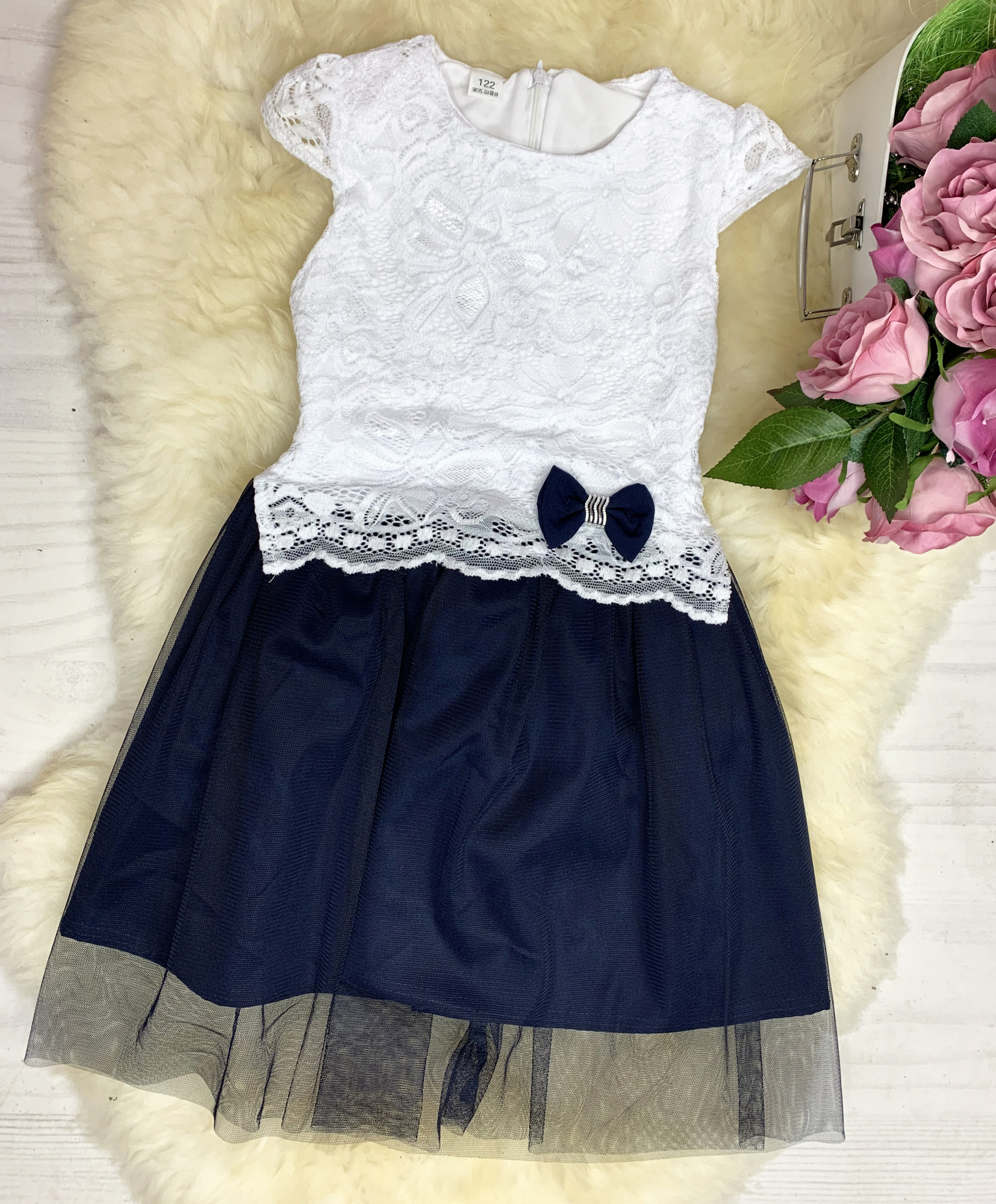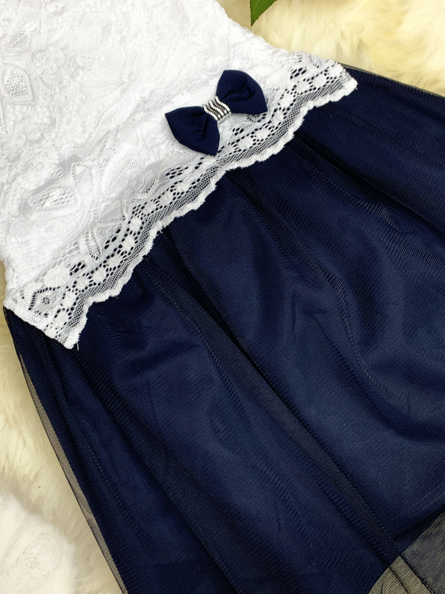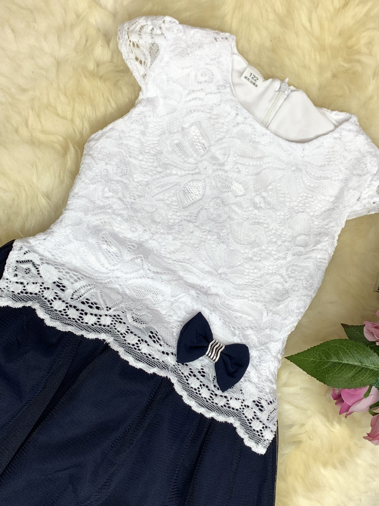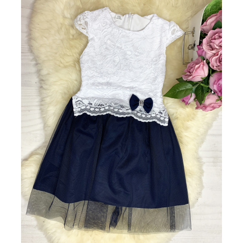 • model wykonany z miękkiej koronki w kolorze biało-granatowym