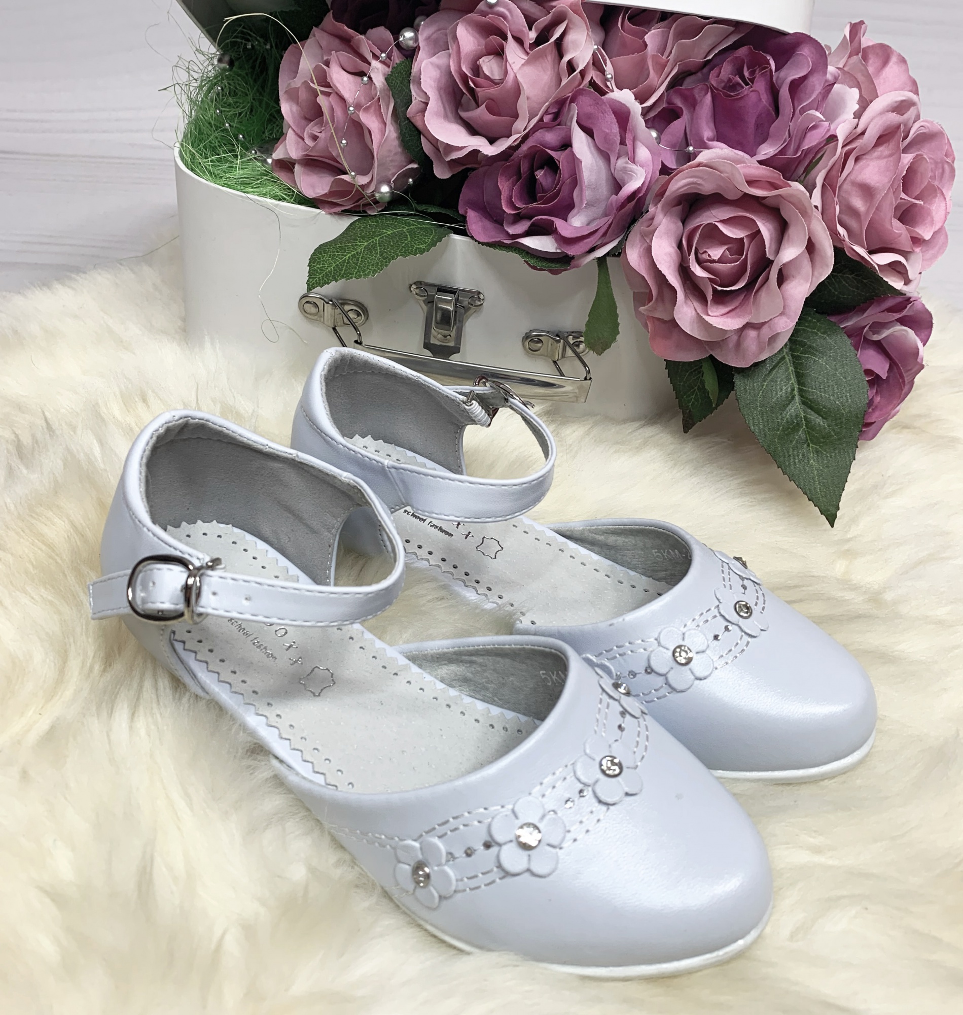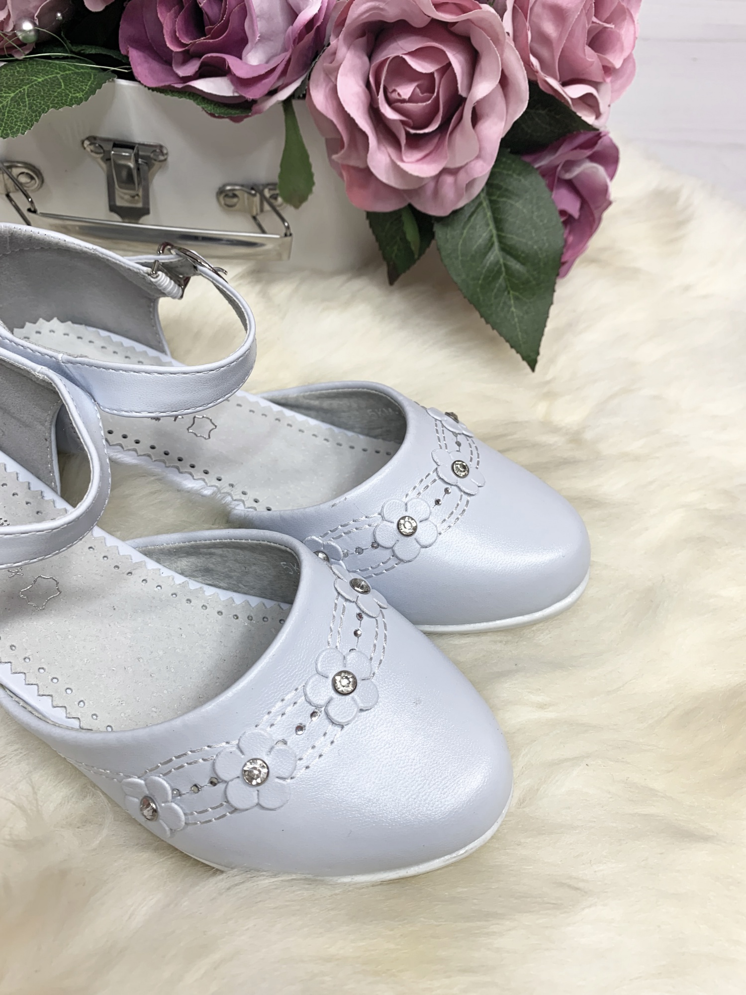 Buciki Komunijne Kwiatuszki na paseczku - Biel