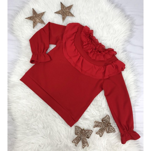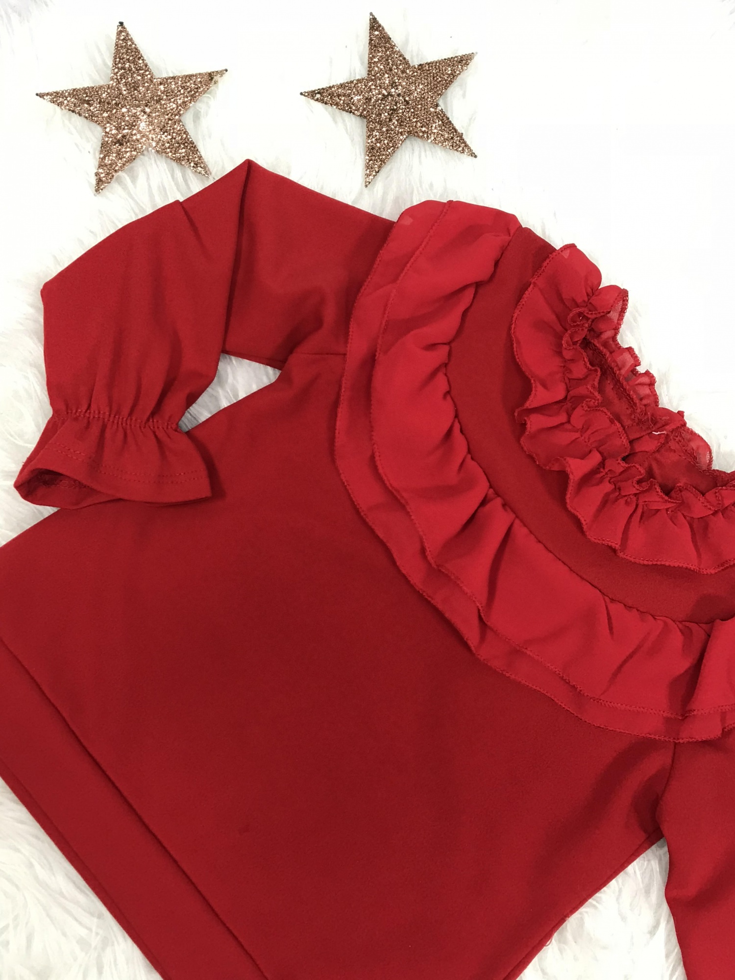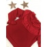 - model ozdobiony falbankami z tyłu zapinany na guziczek