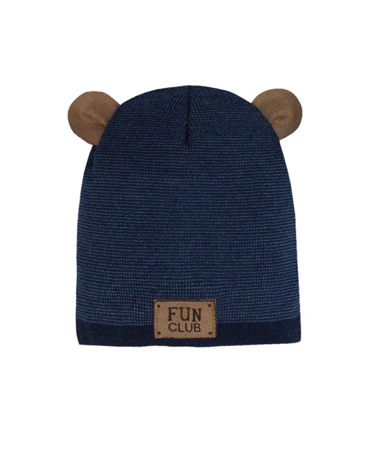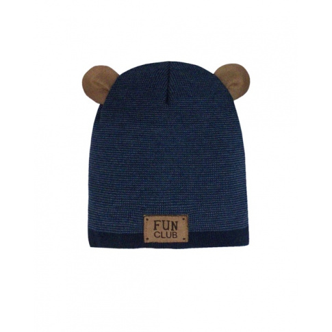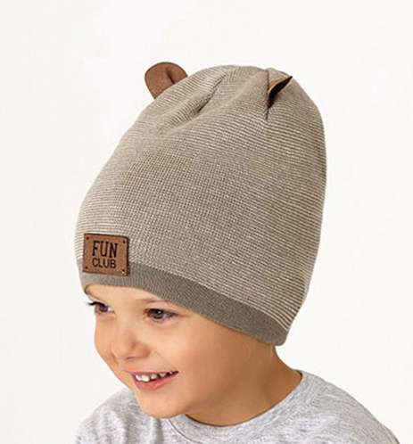 • czapka wiosenna ozdobiona naszywką i uszkami