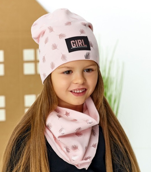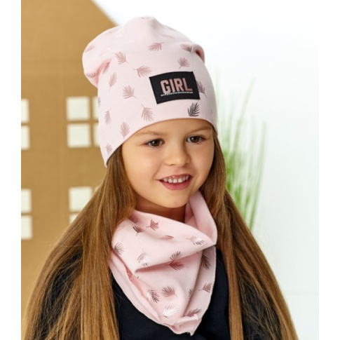 Czapka + komin dla dziewczynki Girl Brzoskwinia