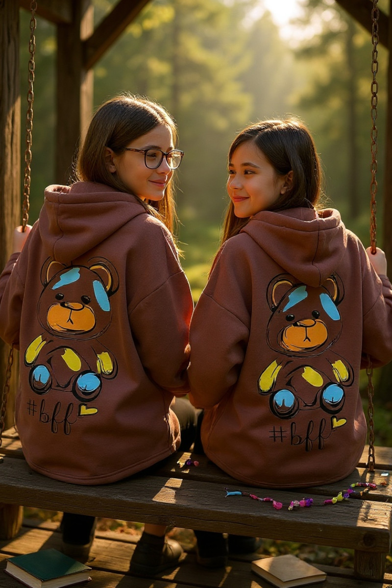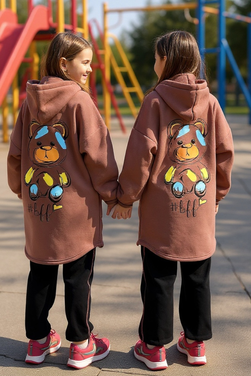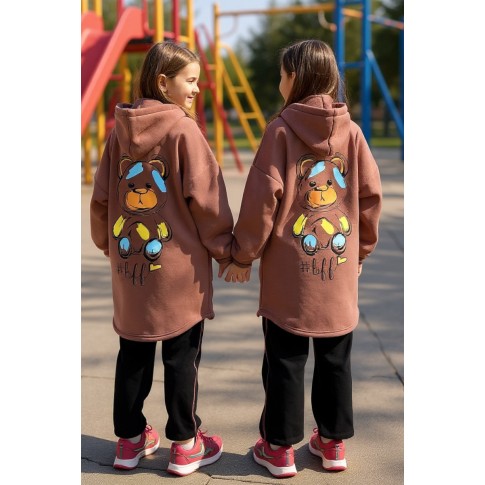 Długa Bluza Ocieplana Best Friend Forever brązowa