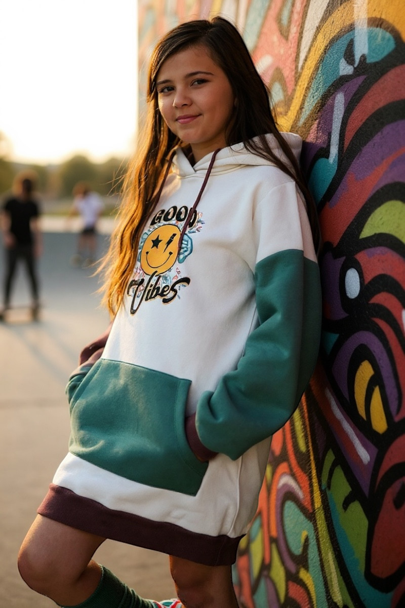 • bluza posiada dużą kieszeń  i kaptur
