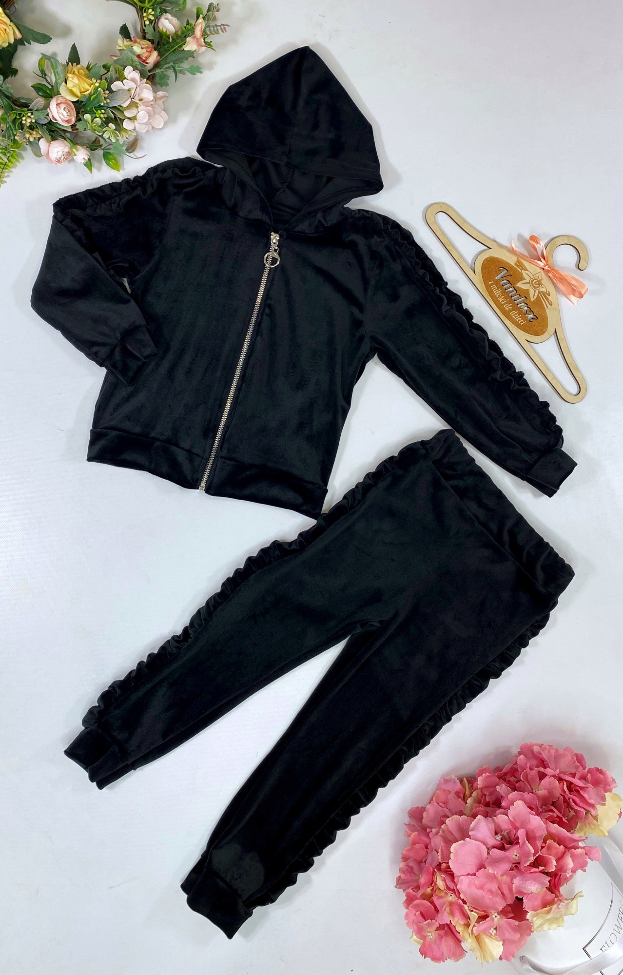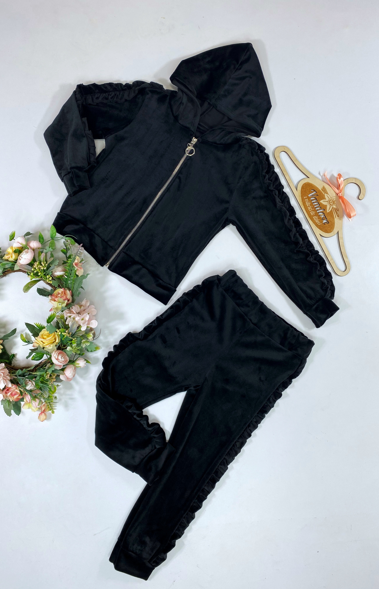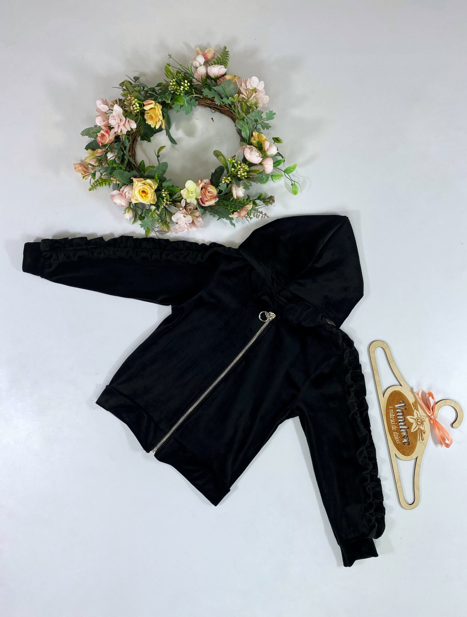 - bluza z ozdobną falbanką na rękawach i spodniach