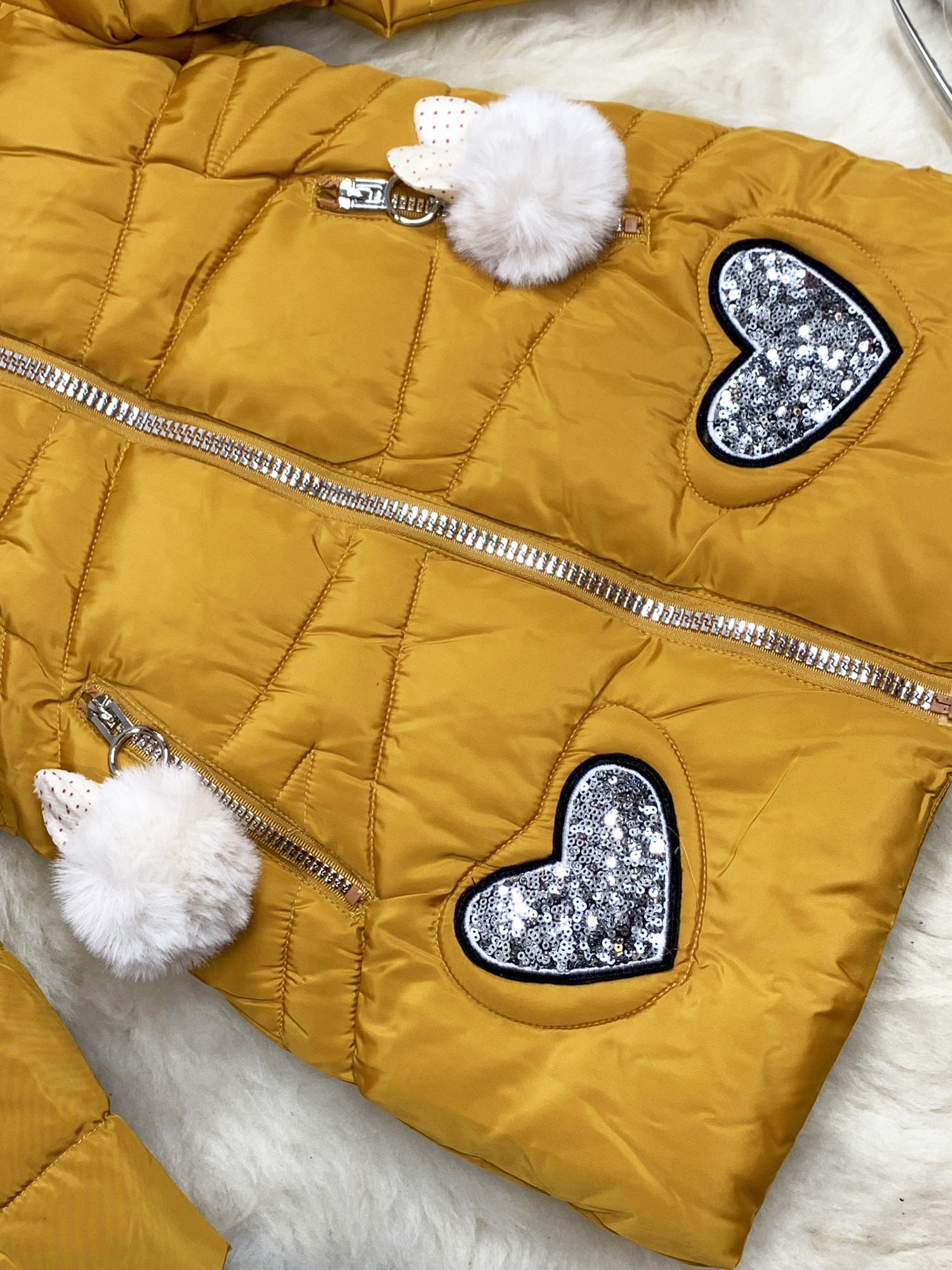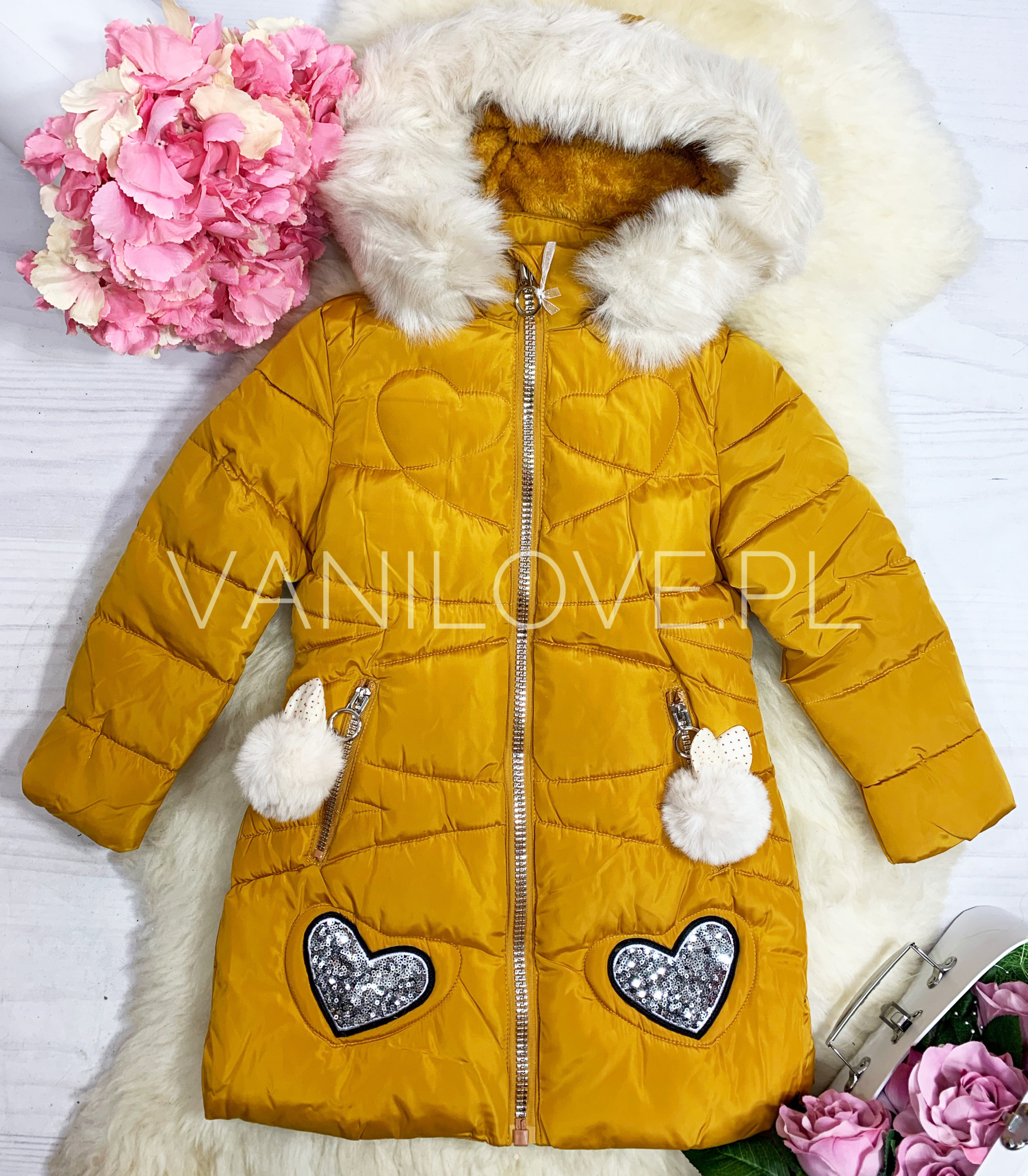 Edycja Limitowana Kurtka zimowa Hearts - kolor musztardowy