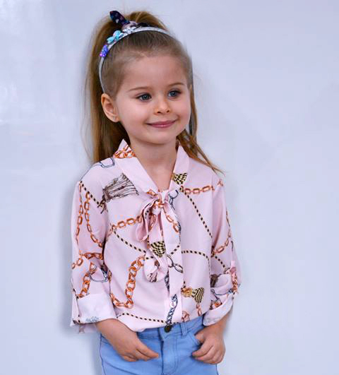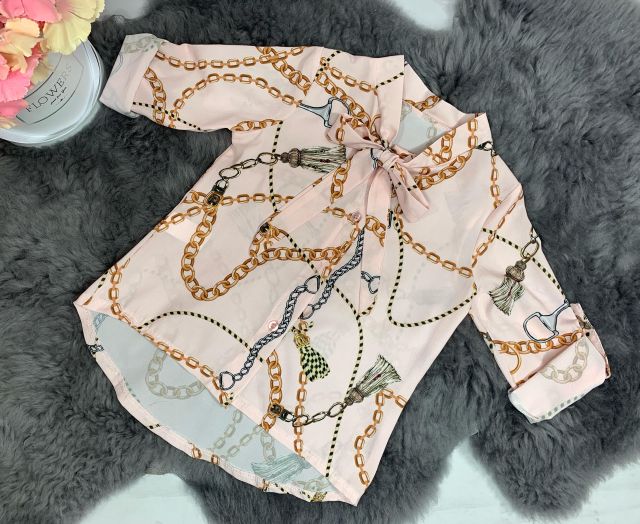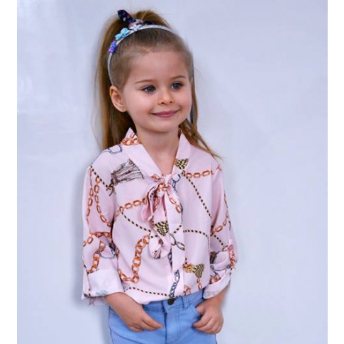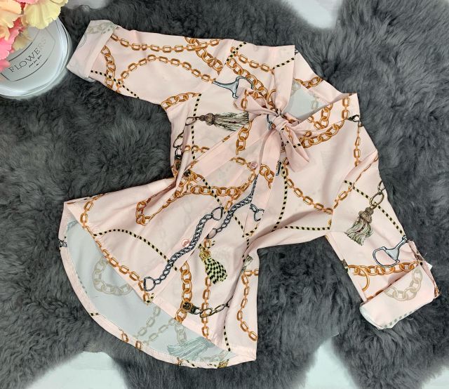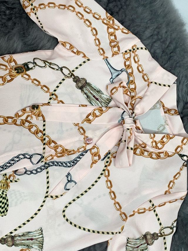 Elegancka koszula z wiązaniem - kolor pudrowy