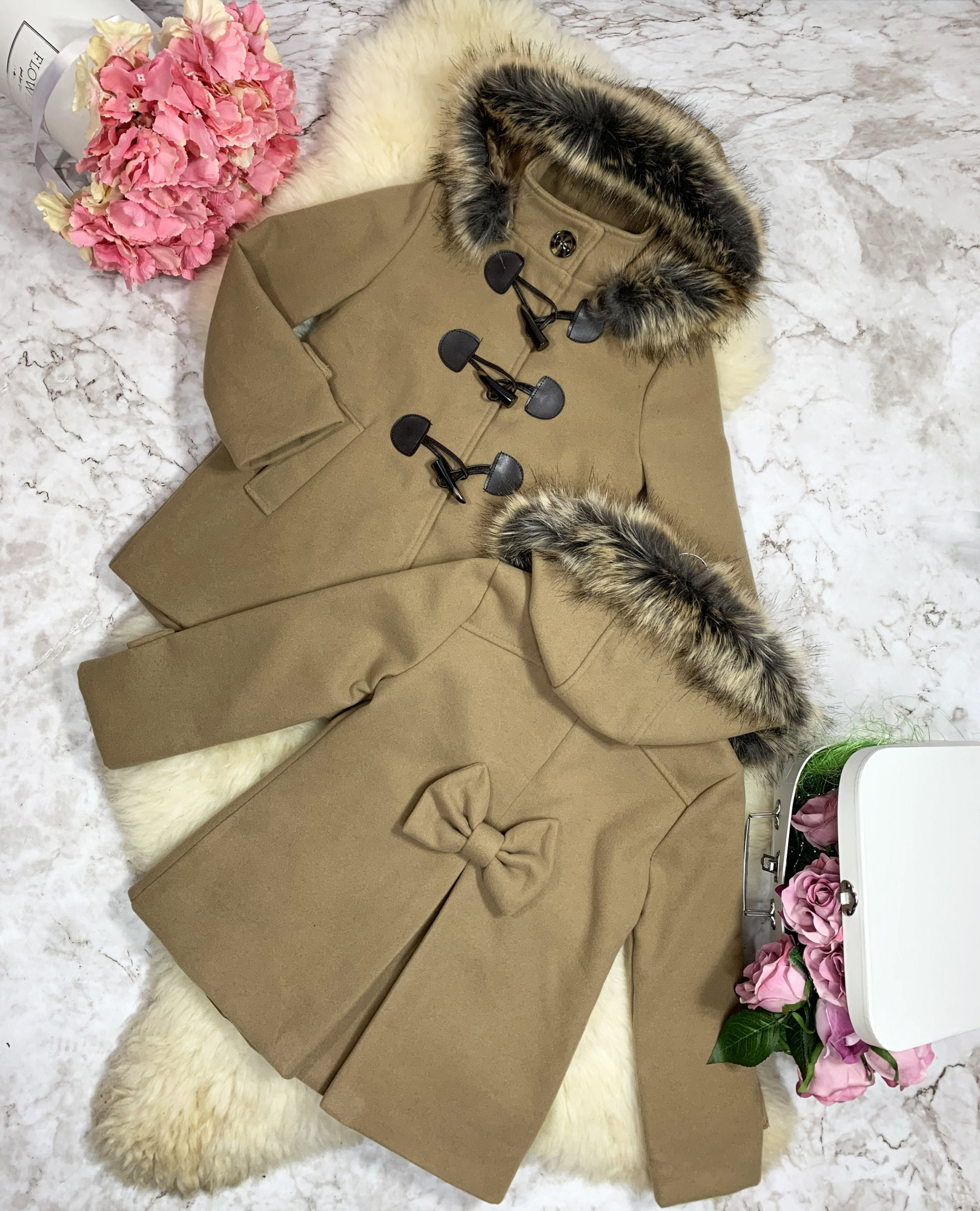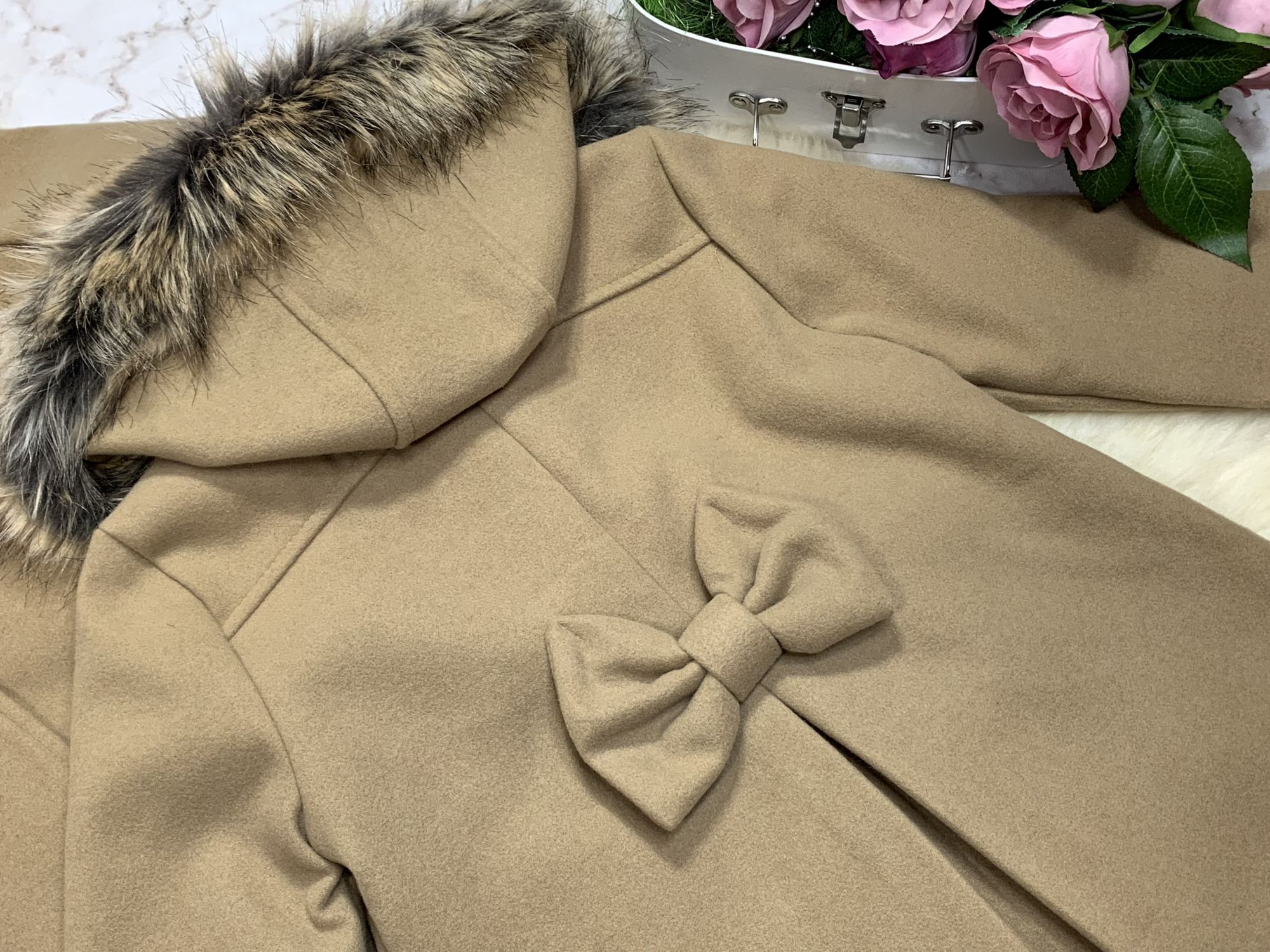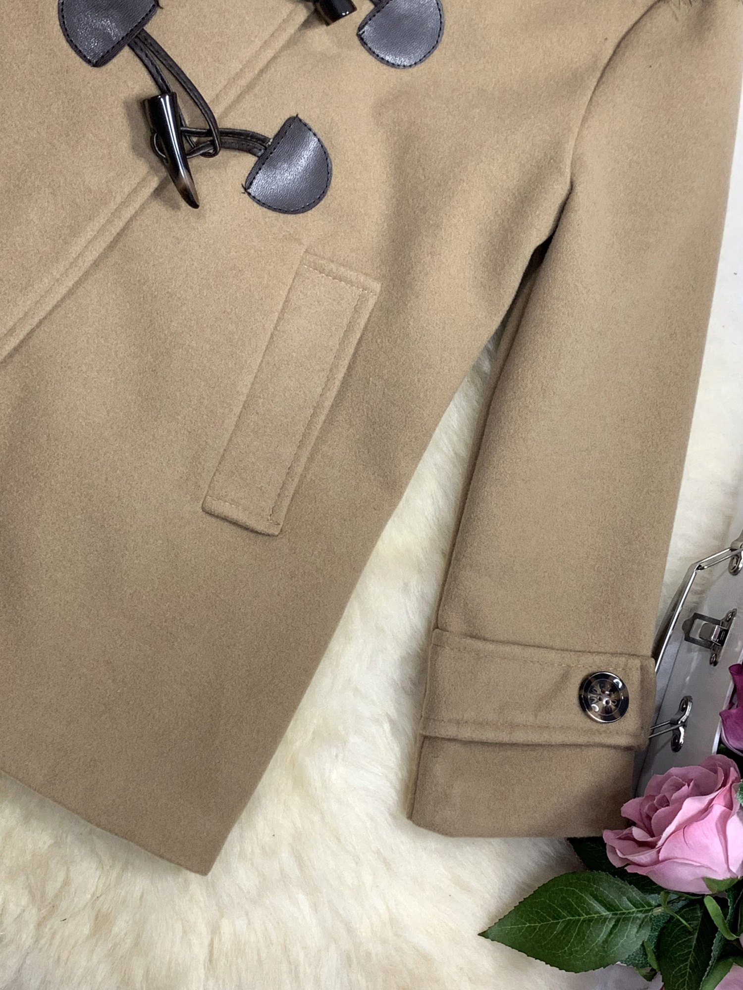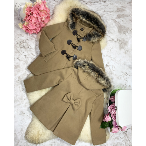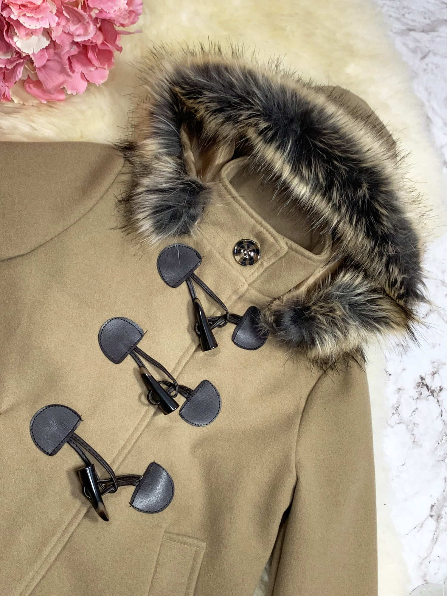 Elegancki Zimowy Płaszczyk z kapturem - cappucino