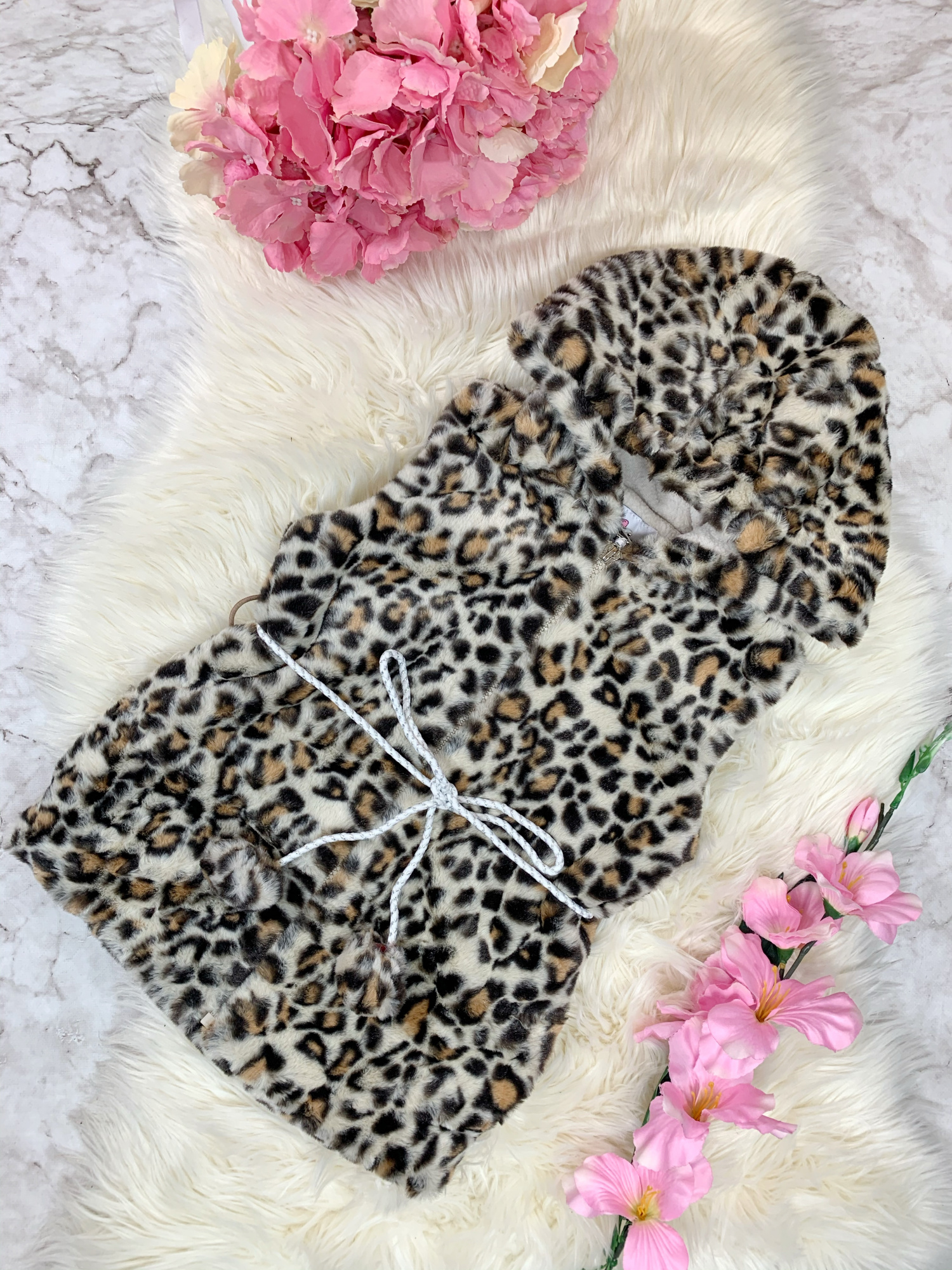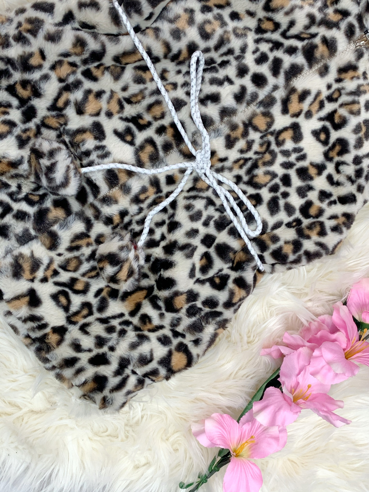 • ozdobiona panterką w pasie wiązana sznureczkiem z pomponami