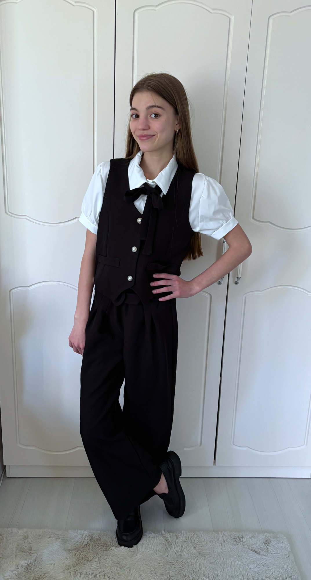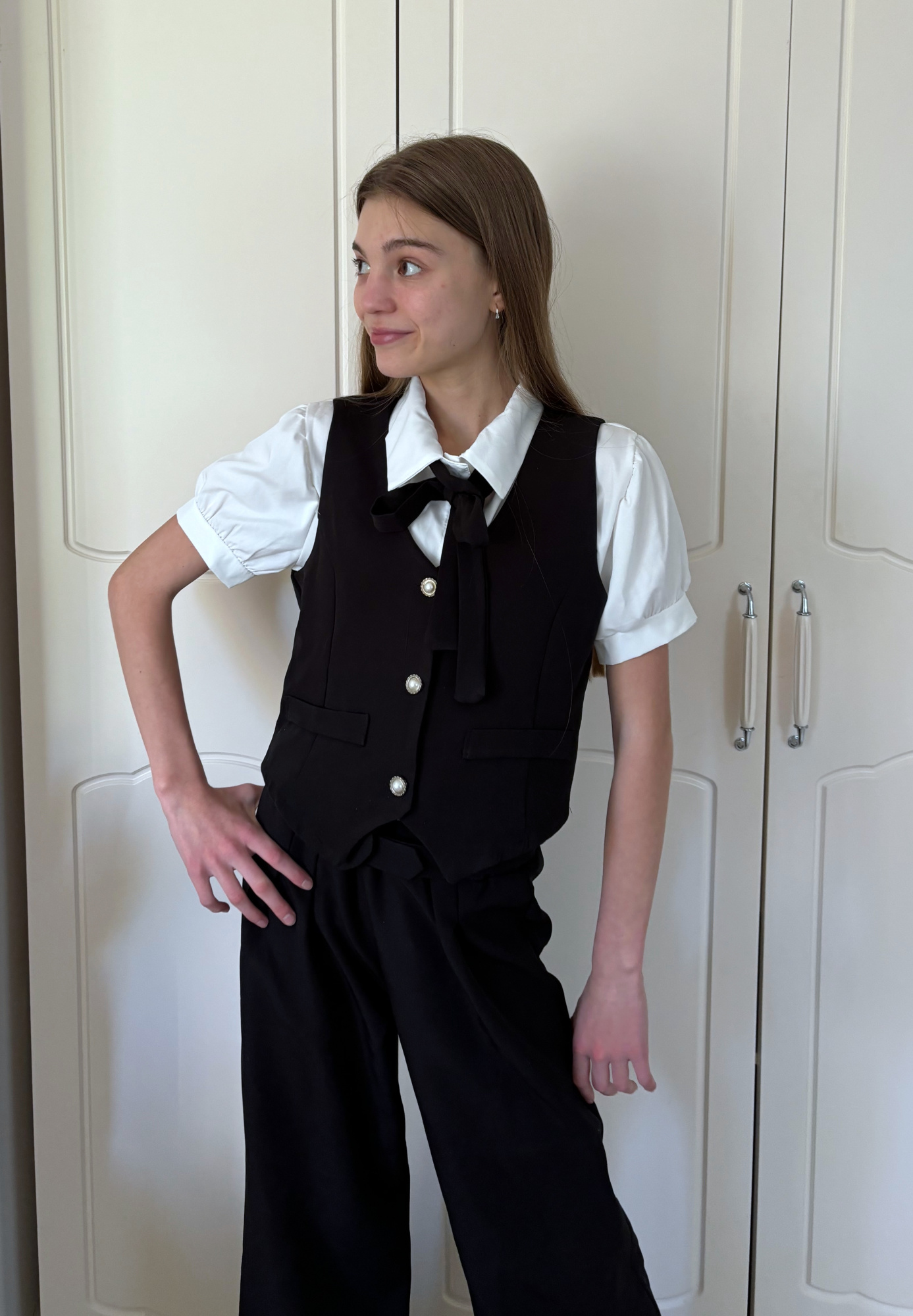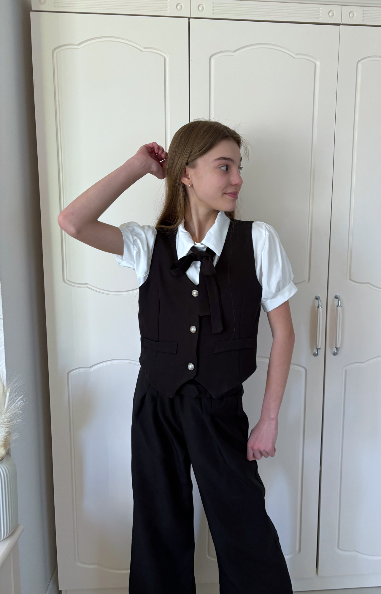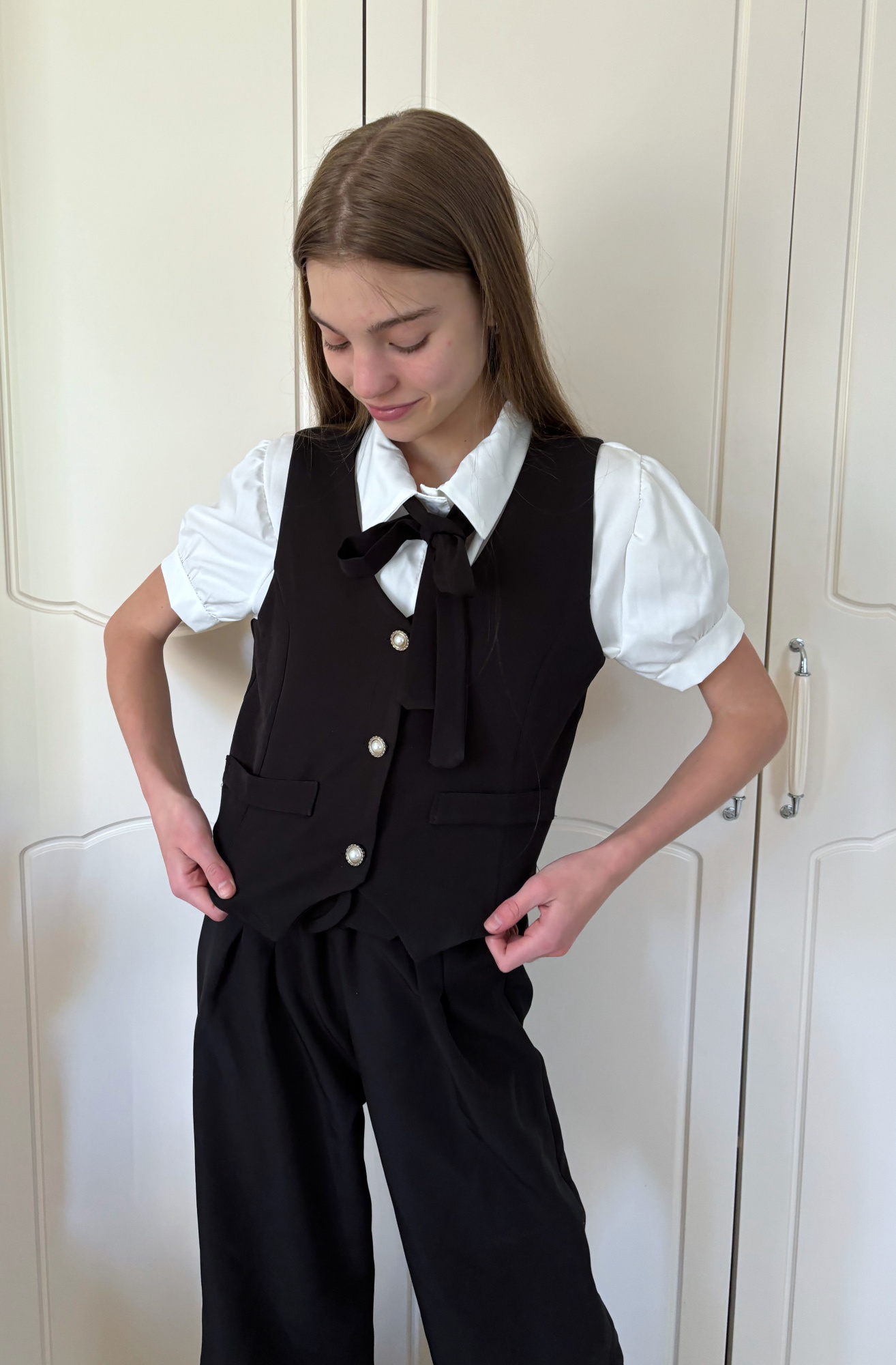 • koszula zapinana na guziczki z krawacikiem + spodnie + kamizelka