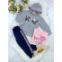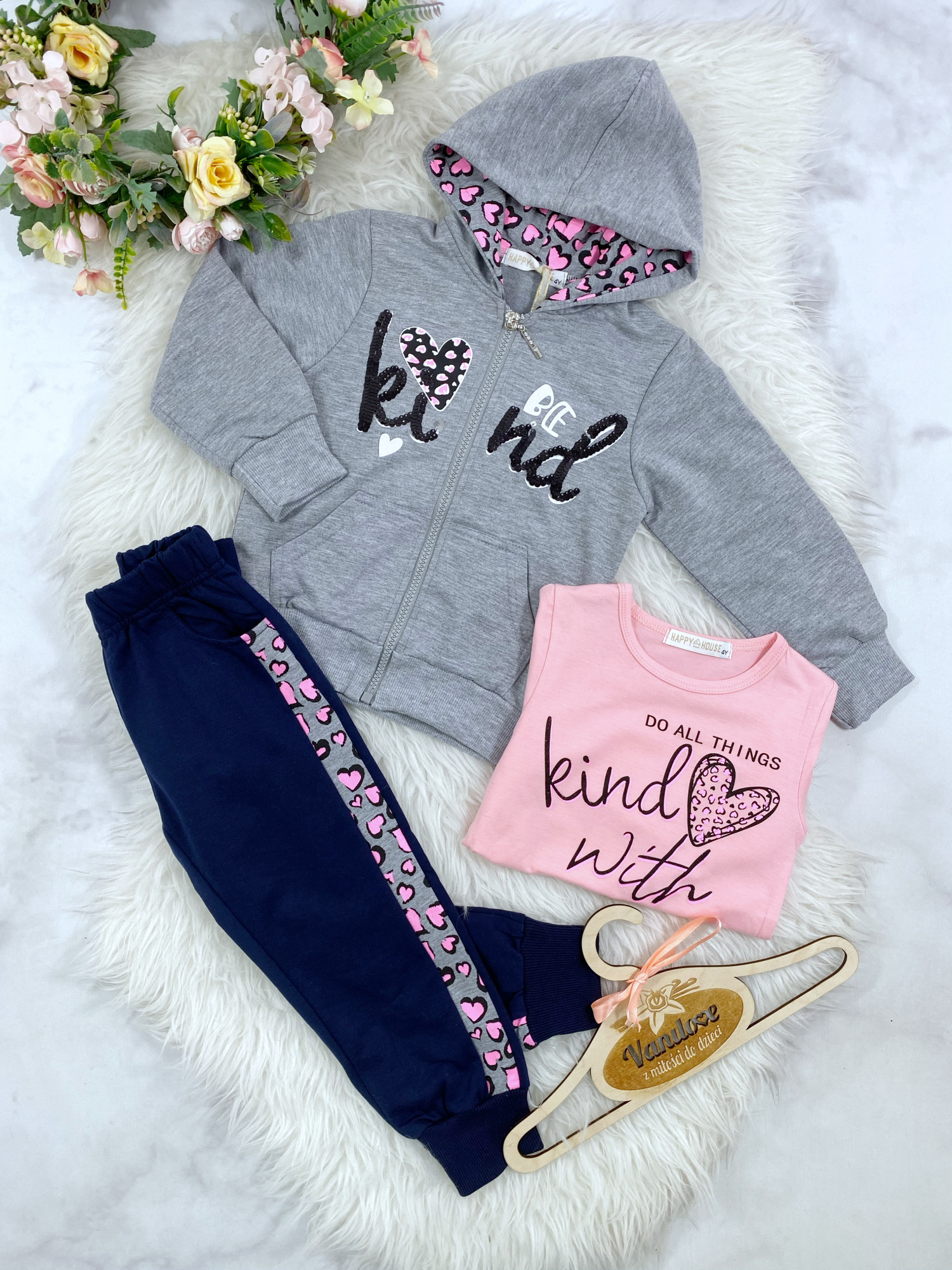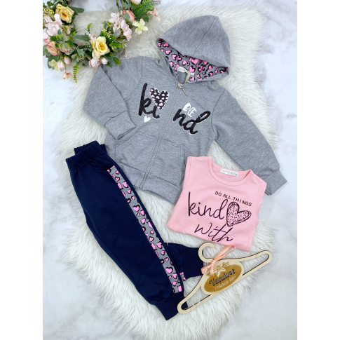 - komplet składający się z trzech części: bluza z kapturem, bluzka oraz spodnie