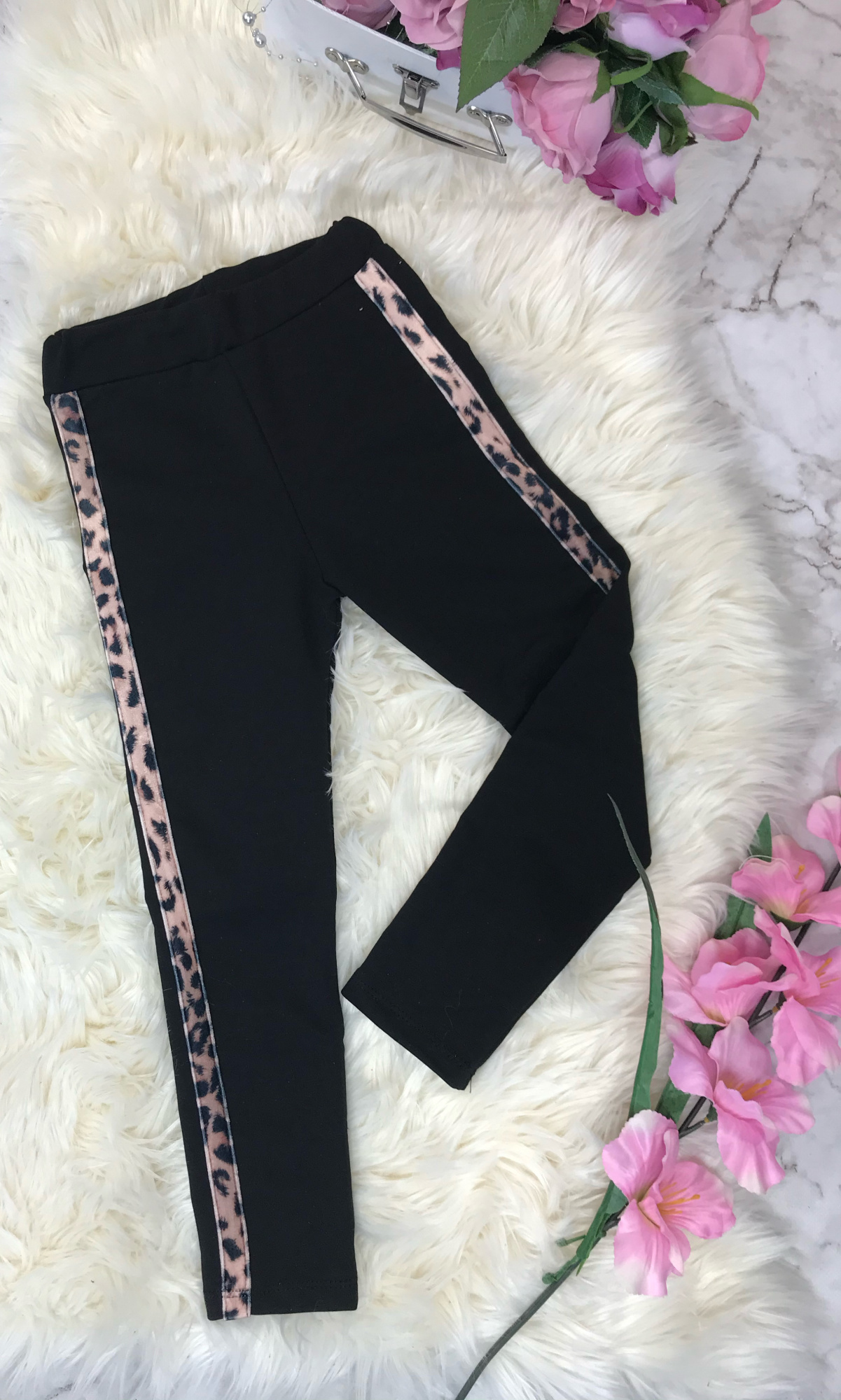 - legginsy z gumką w pasie bawełniane z welurowym lampasem w panterkę