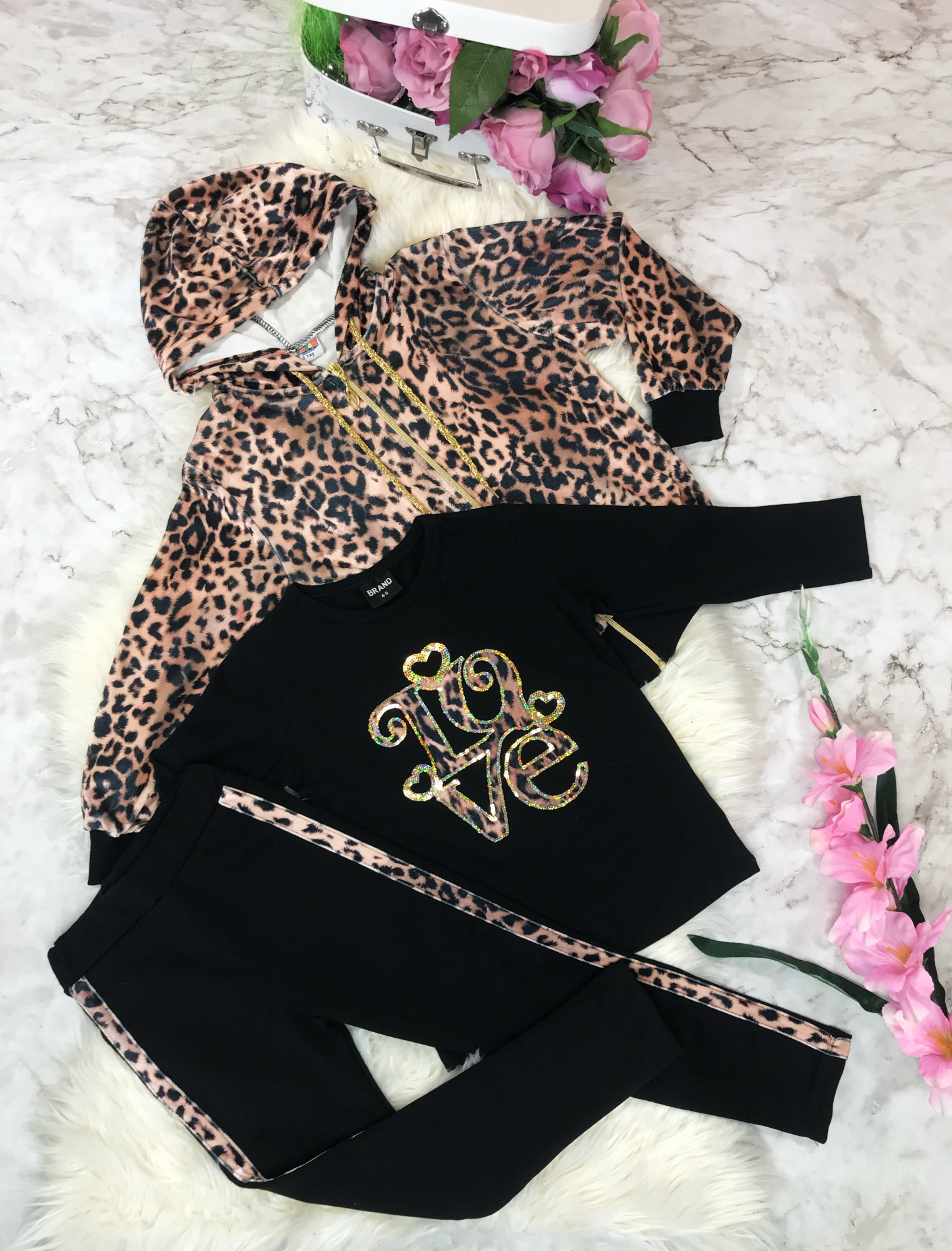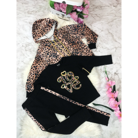 - bluza posiada kaptur, bluzka zdobiona naszyciem Love w panterkę z cekinami
