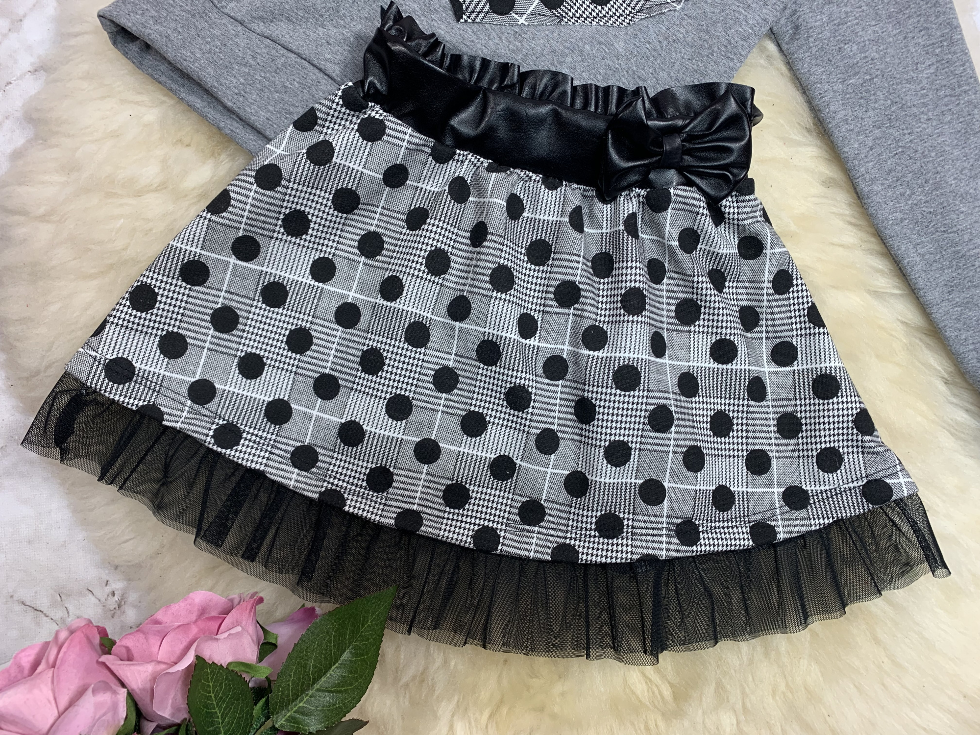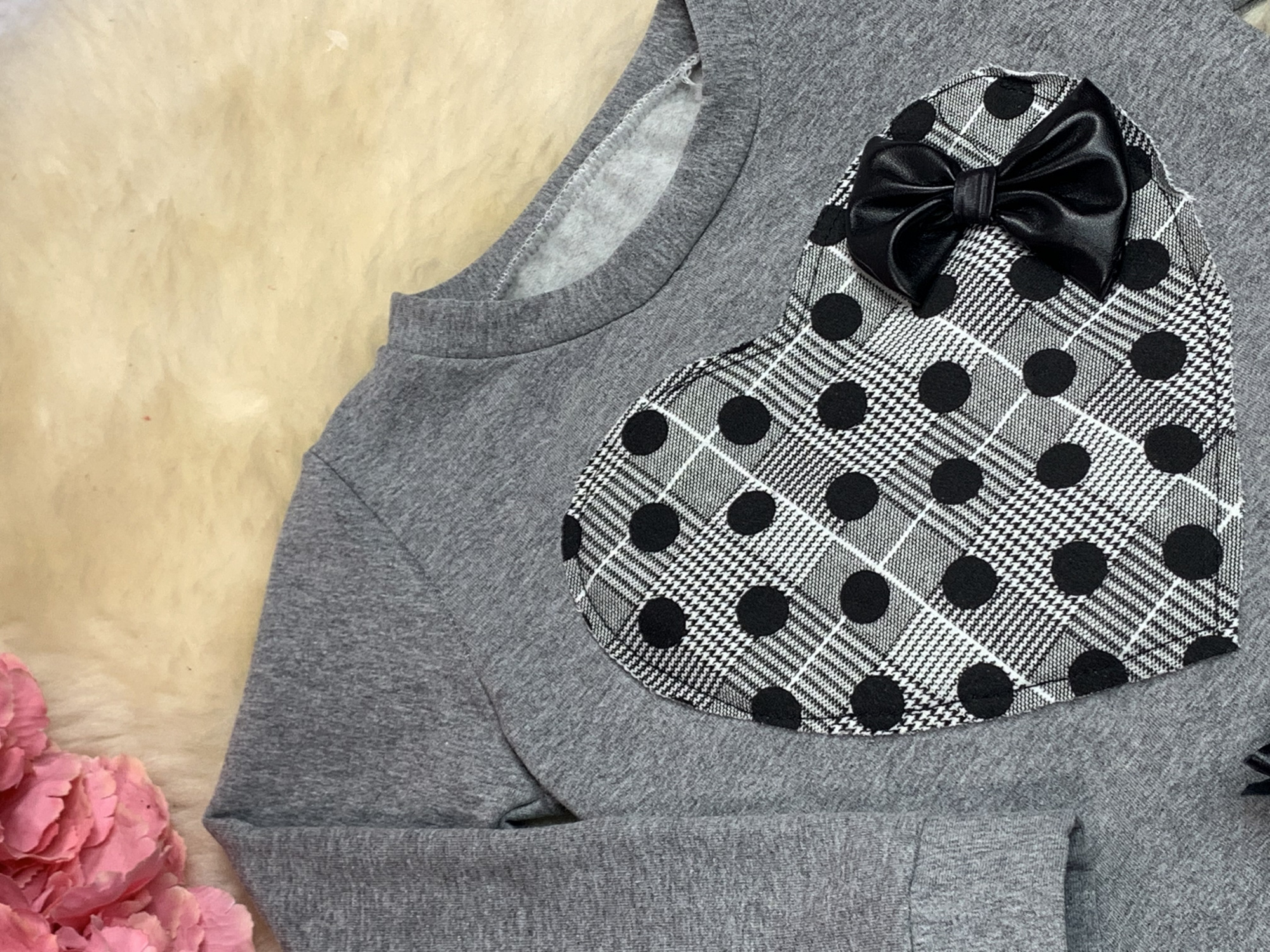 - na komplet składa się bluza ocieplana z pięknym sercem w pepitkę