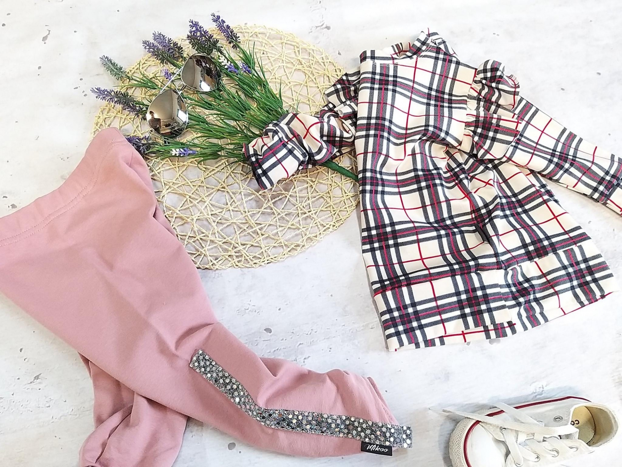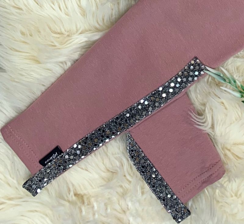 - legginsy zdobione srebrzystym lampasem z cekinów