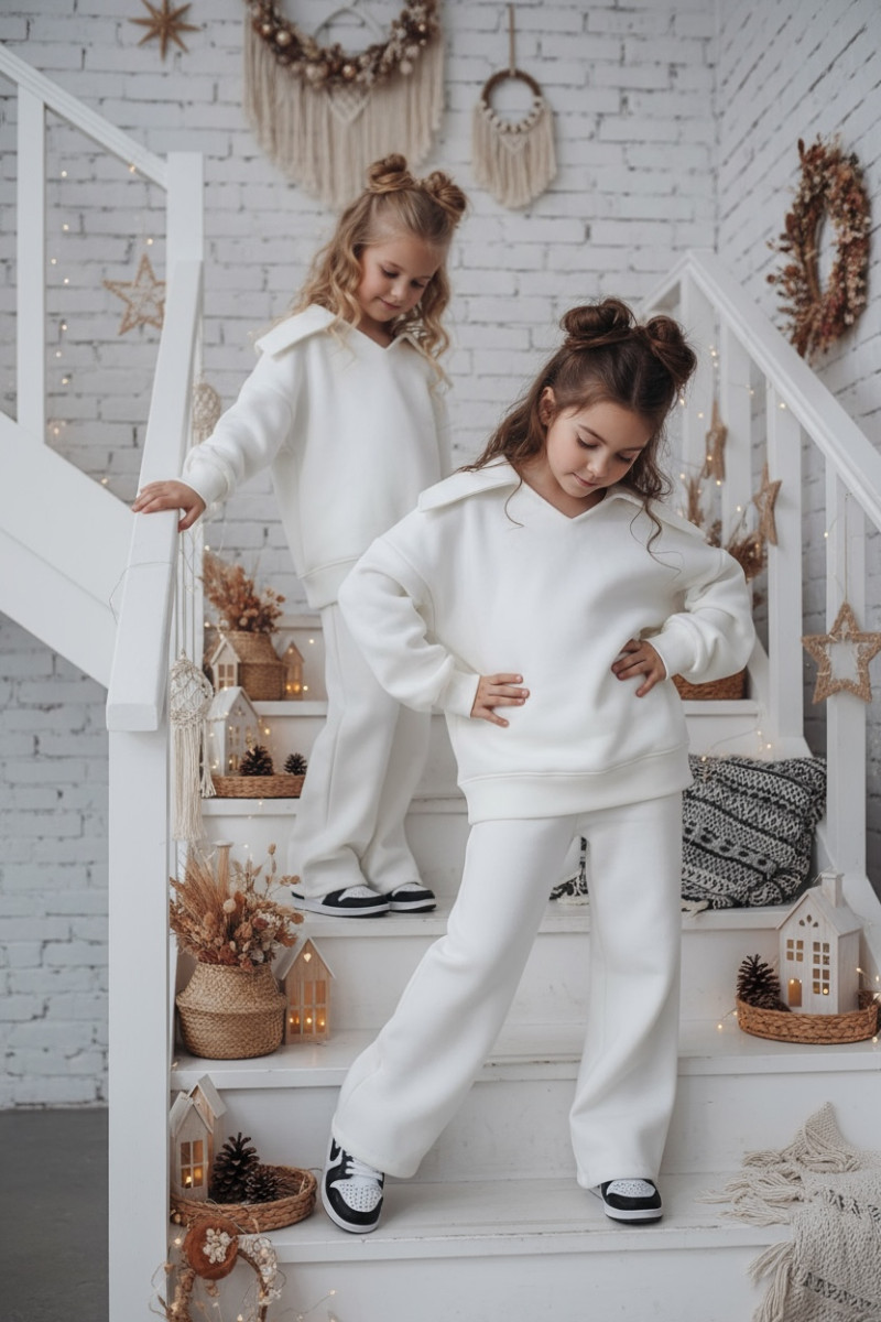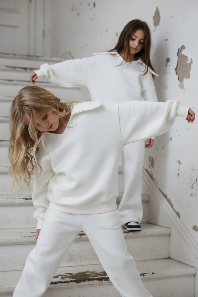 Komplet bluza i spodnie Kołnierz Śmietanka