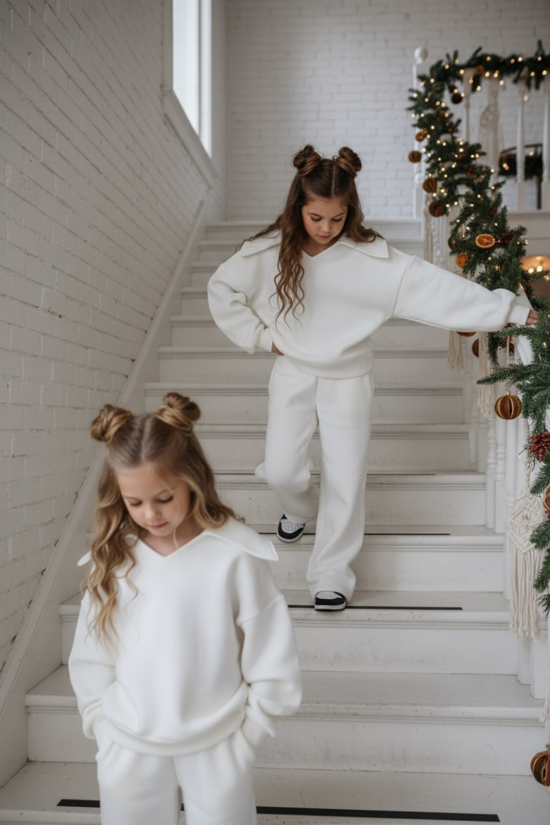 Komplet Bluza i Spodnie Kołnierz Śmietanka