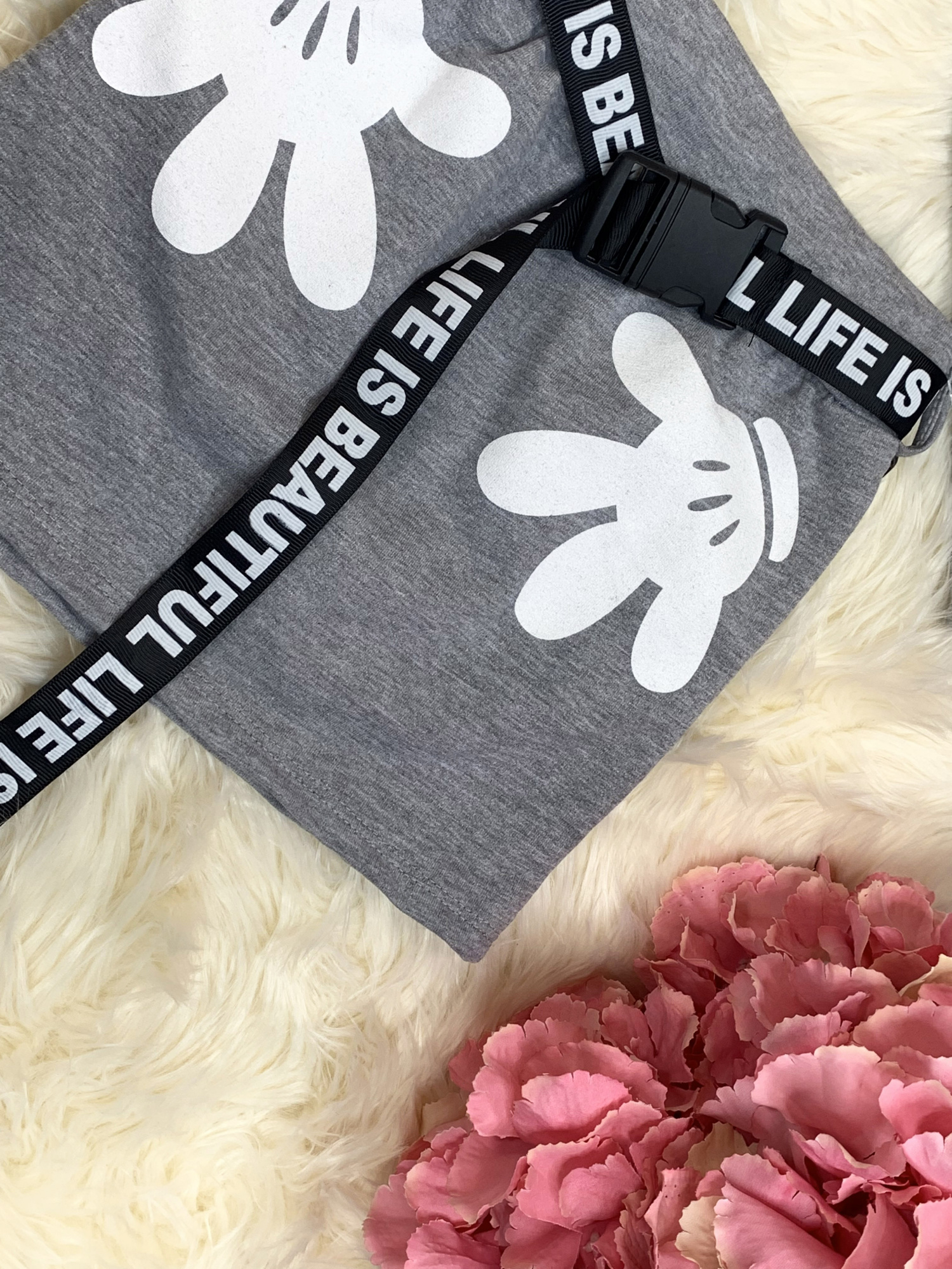 - spódniczka z nadrukiem łapek i paseczkiem z napisami