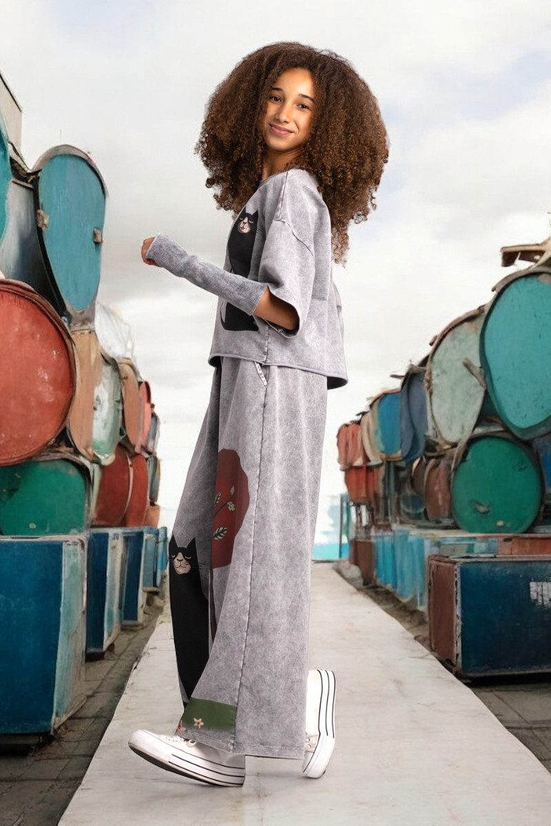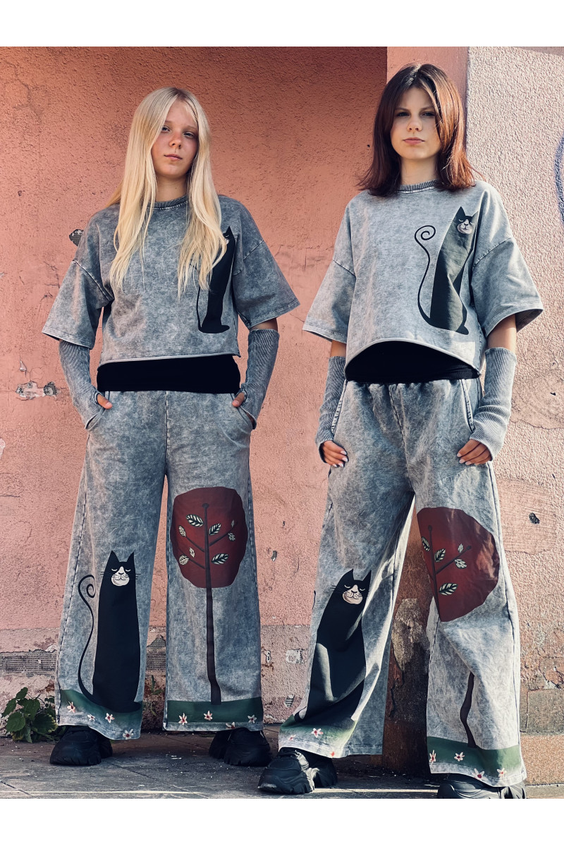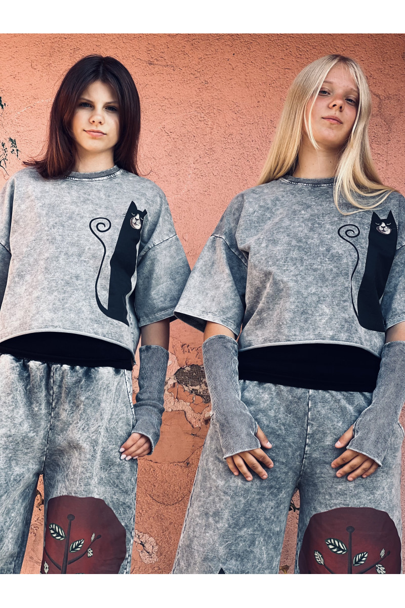 Komplet  Bluzka i Spodnie mitenki-rękawy Szary