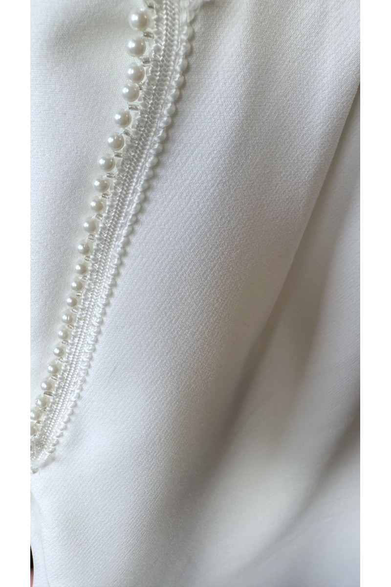 • bluzka z okrągłym dekoldem obszytym drobnymi perełkami