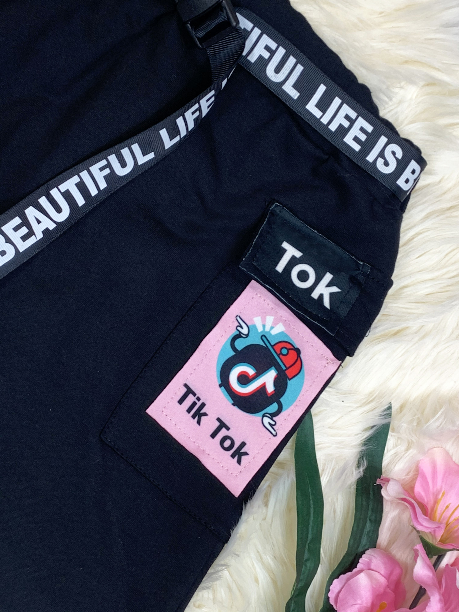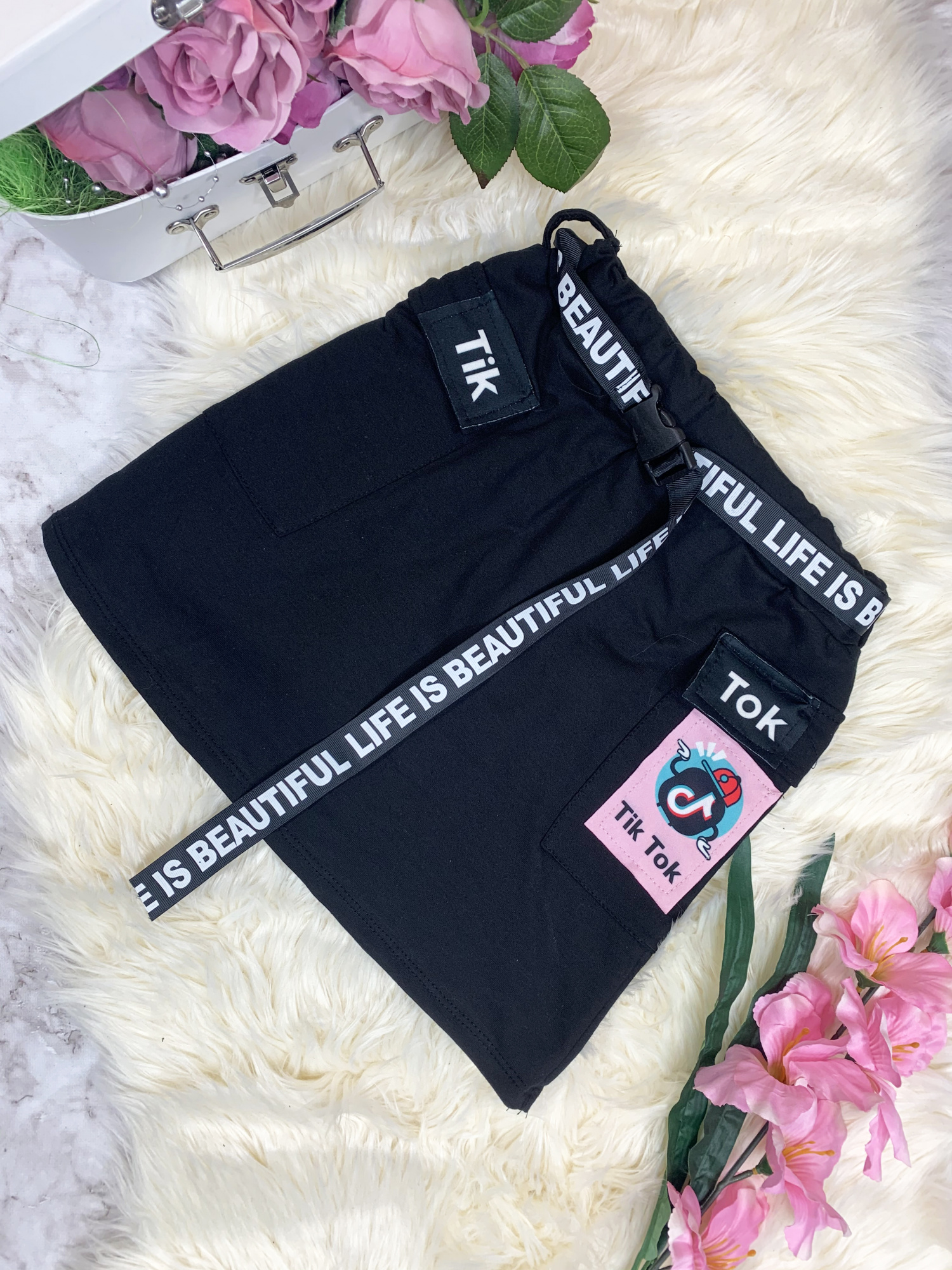 • spódniczka z nadrukiem Tik TOK i paseczkiem z napisami