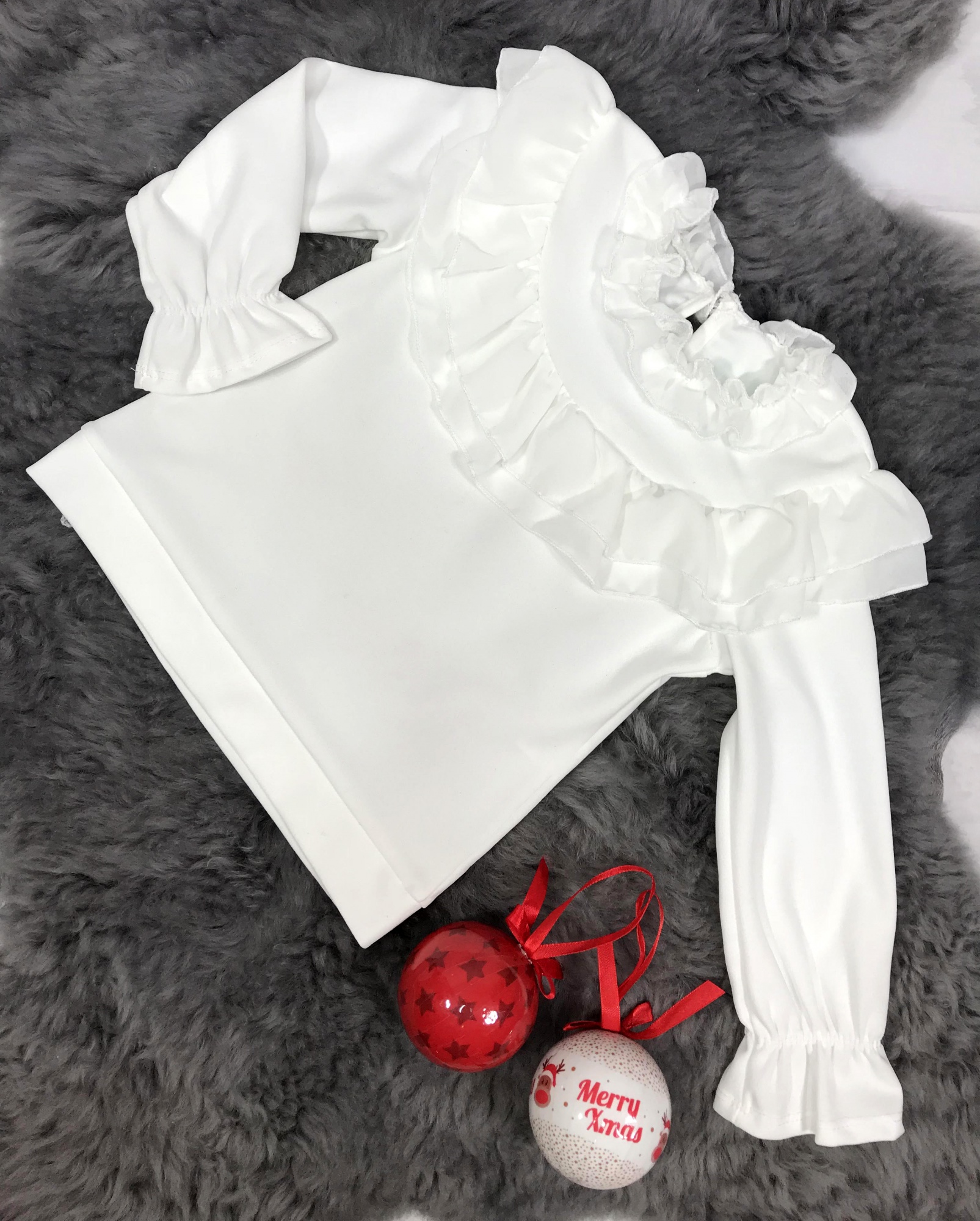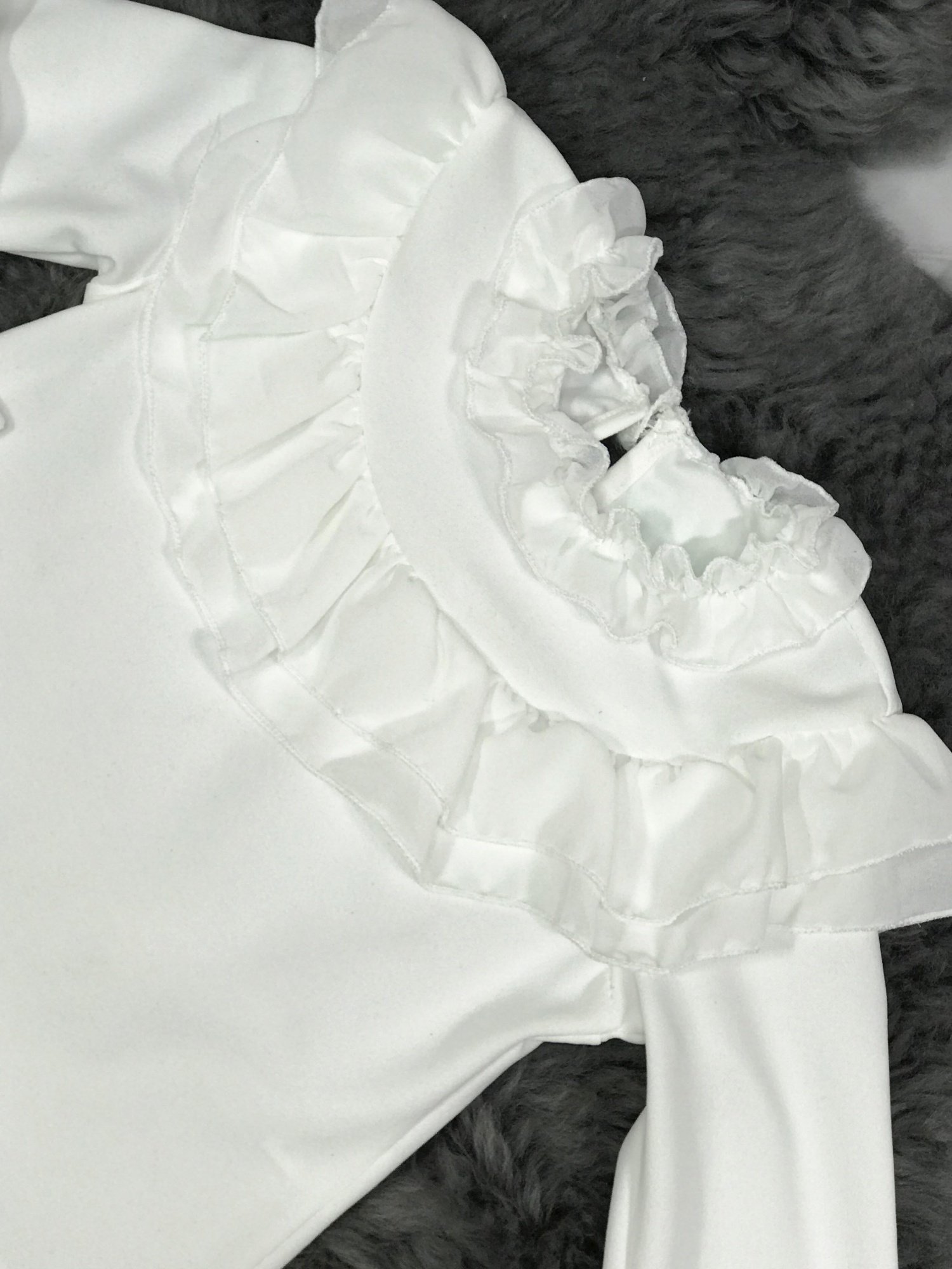• bluzka ozdobiona falbankami z tyłu zapinany na guziczek