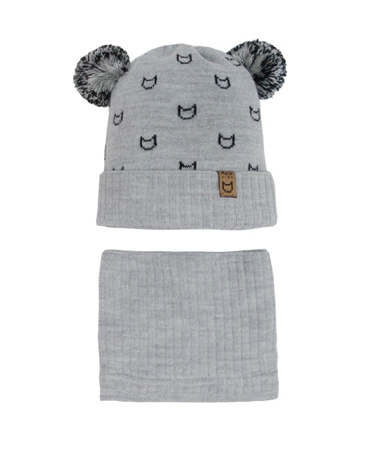 Komplet chłopięcy BABY czapka + komin 2 pompony Grey