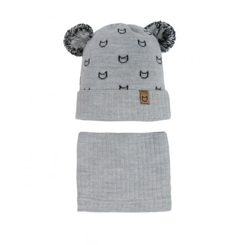 Komplet chłopięcy Czapka + Komin 2 pompony grey