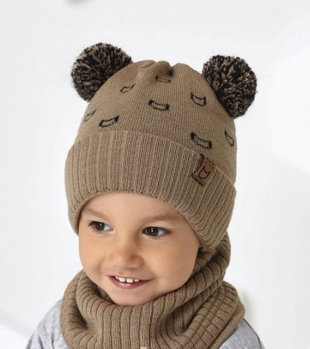 • komplet zimowy ozdobiony 2 puszystymi pomponami