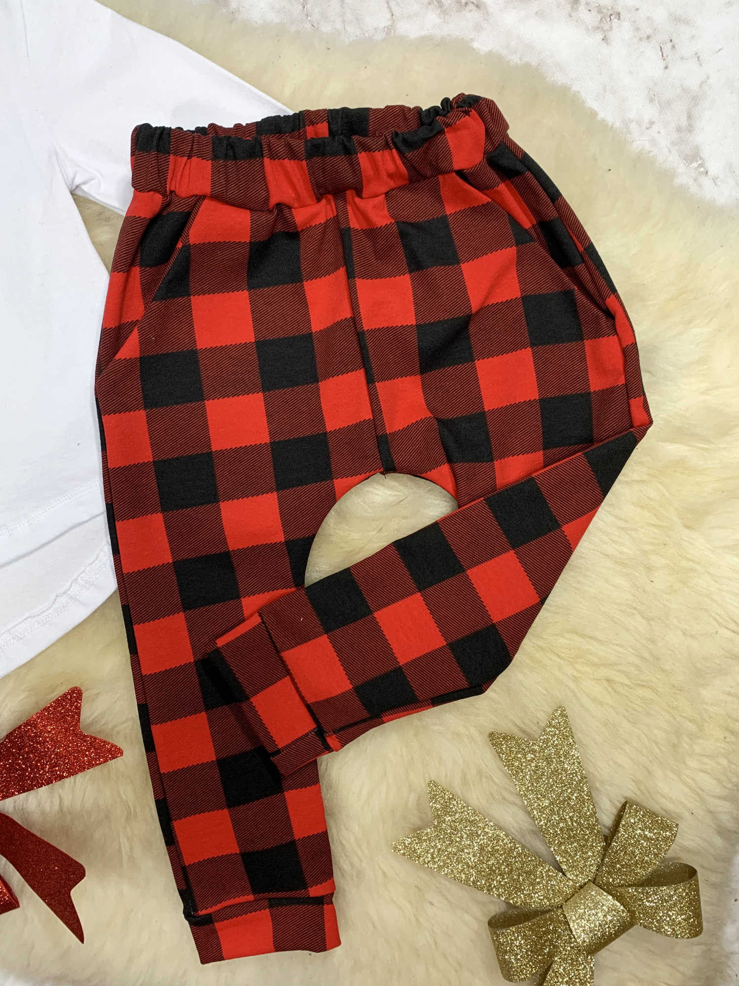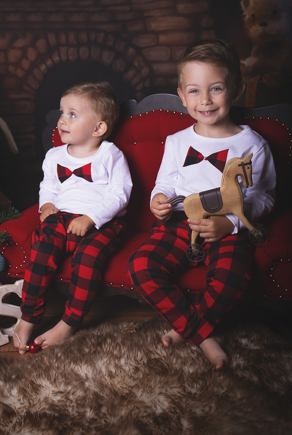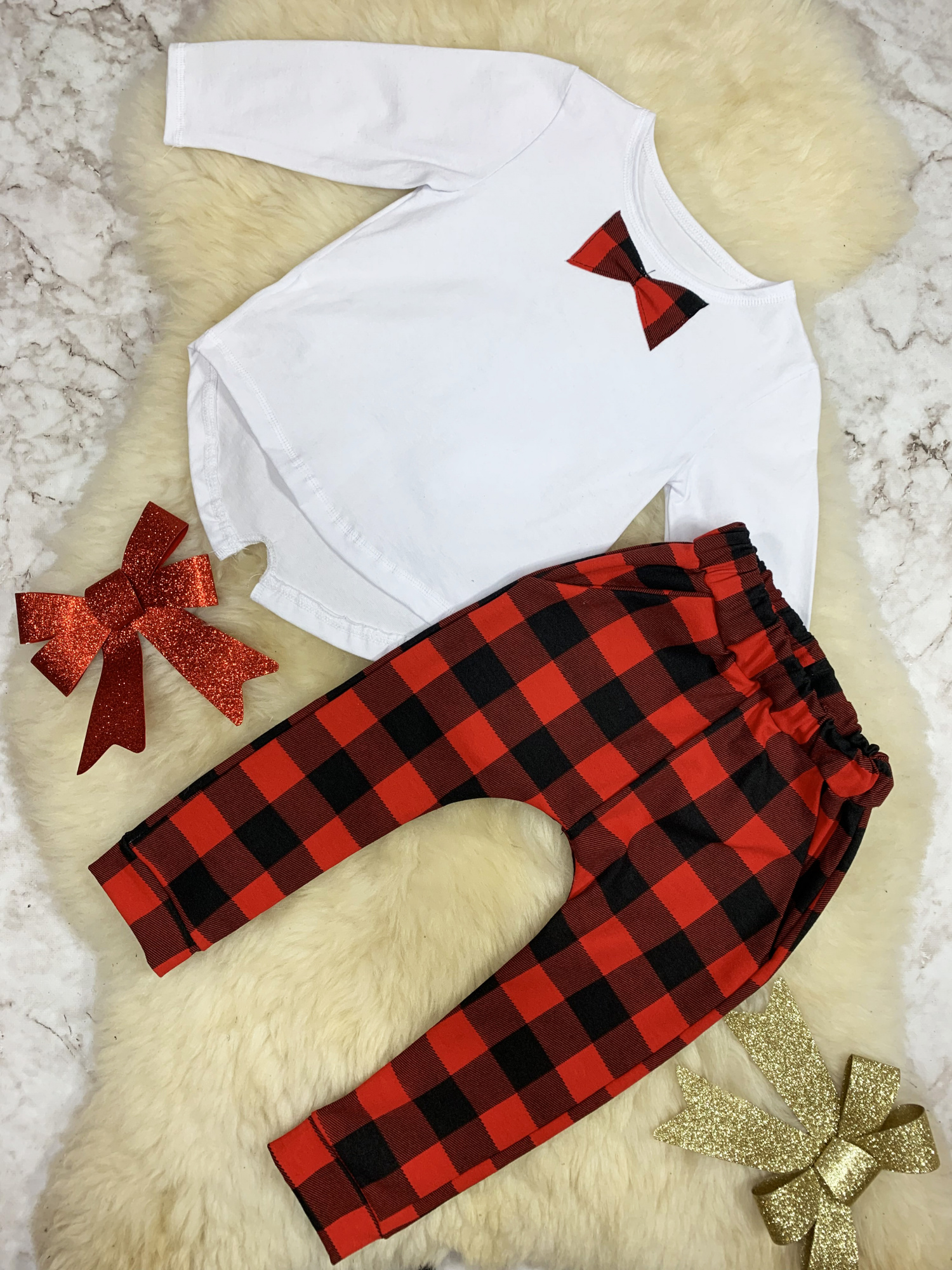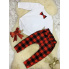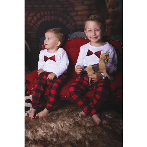 - na zestaw składają się bluzeczka asymetryczna z naszywką muszką oraz spodnie w modną kratę