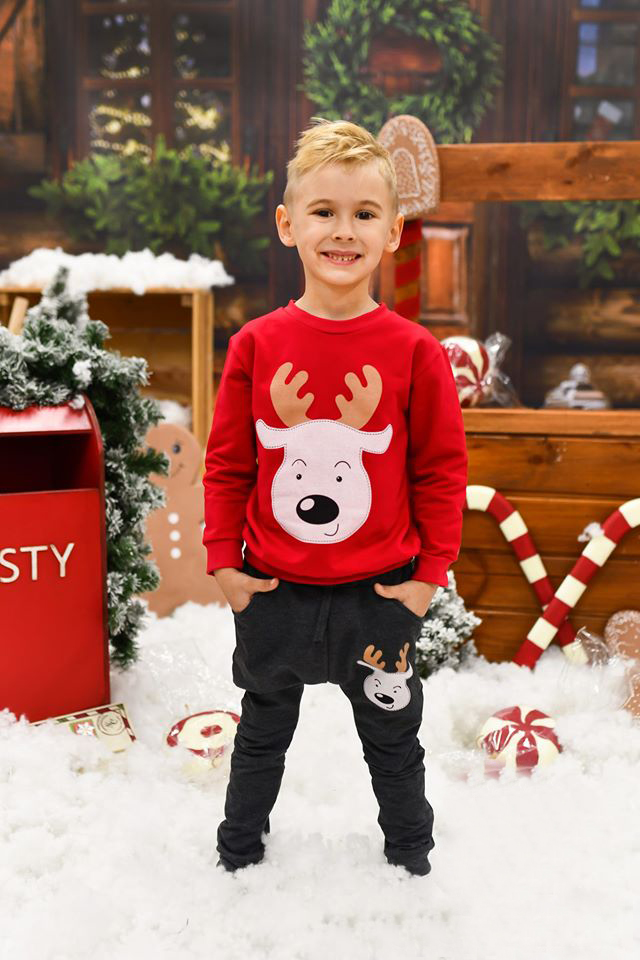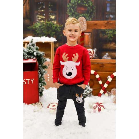 Komplet chłopięcy Reniferek - Czerwony + Grafit