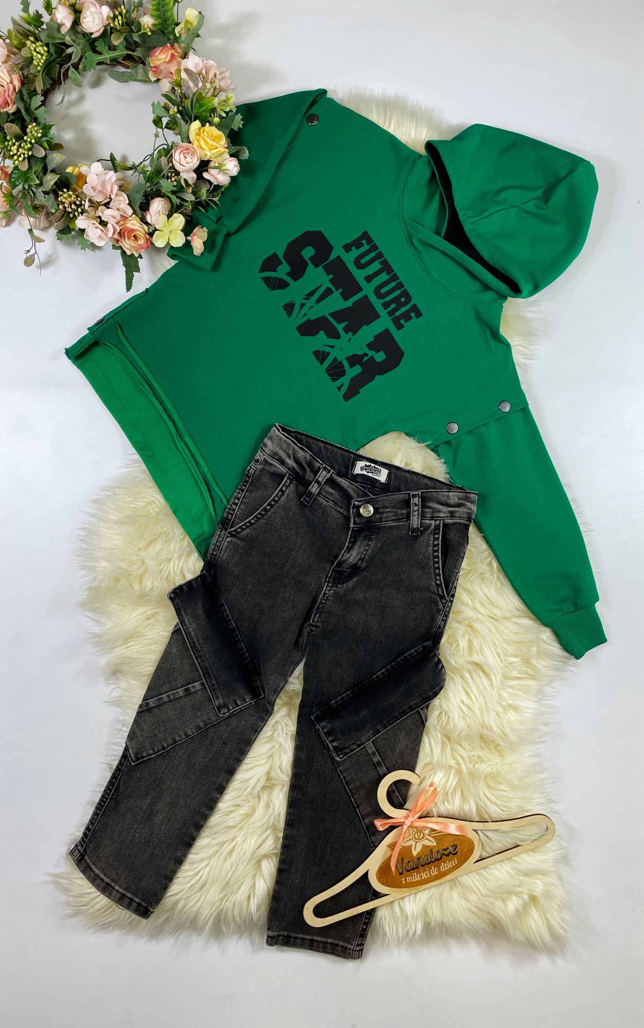 • praktyczny komplet na który składa się bluza oraz spodnie jeansowe