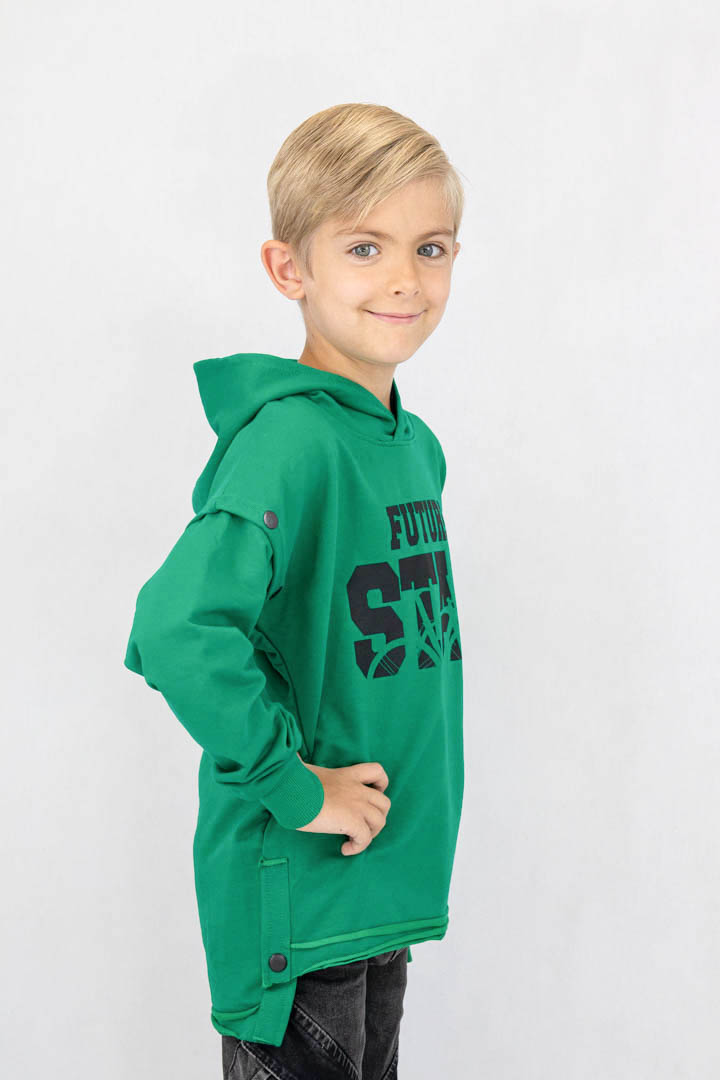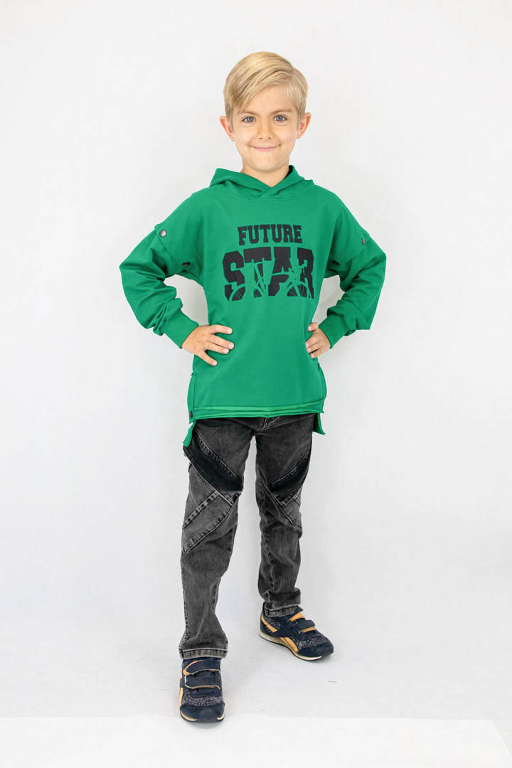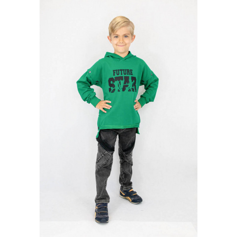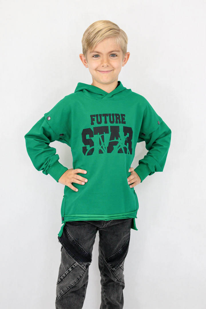 • bluza z kapturem, modnym nadrukiem o asymetrycznym fasonie