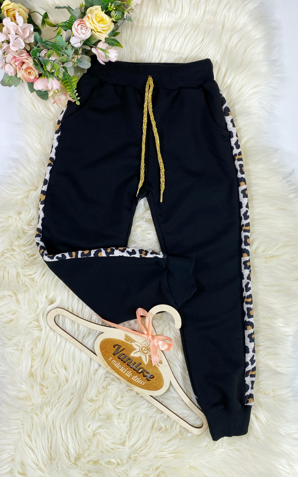 - ozdobne panterkowe lampasy na nogawkach